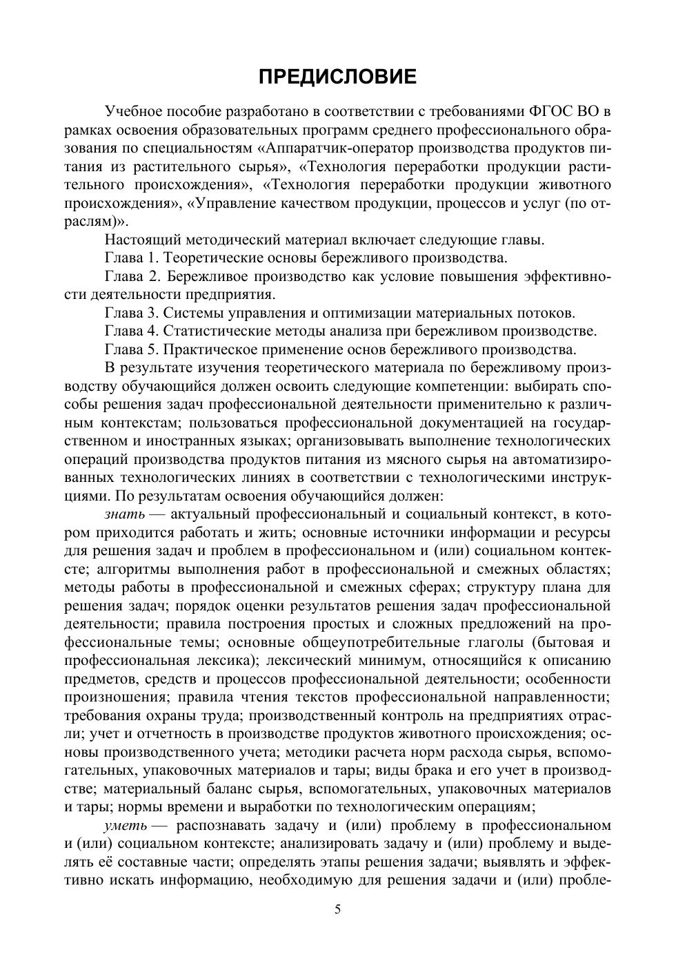 Учебное пособие предназначено для обучающихся в системе среднего профессионального образования с целью освоения способов оценки и управления бережливым производства. Грамотно и профессионально решать вопросы бережливого производством. В результате освоения теоретического материала обучающийся должен освоить профессиональные компетенции в системе бережливого производства. Соответствует современным требованиям Федерального государственного образовательного стандарта среднего профессионального образования и профессиональным квалификационным требованиям.