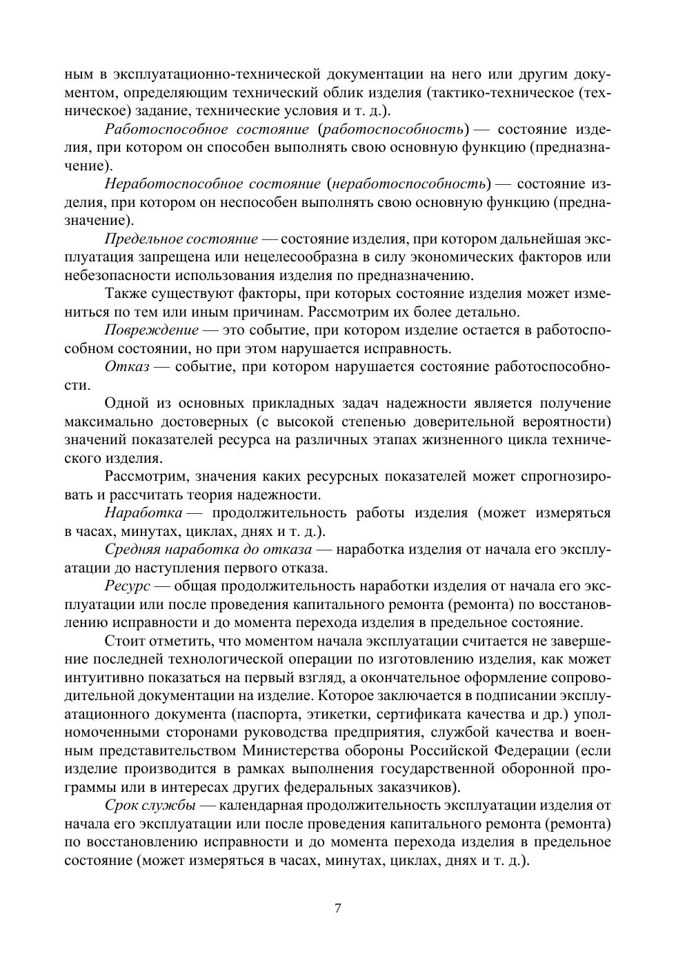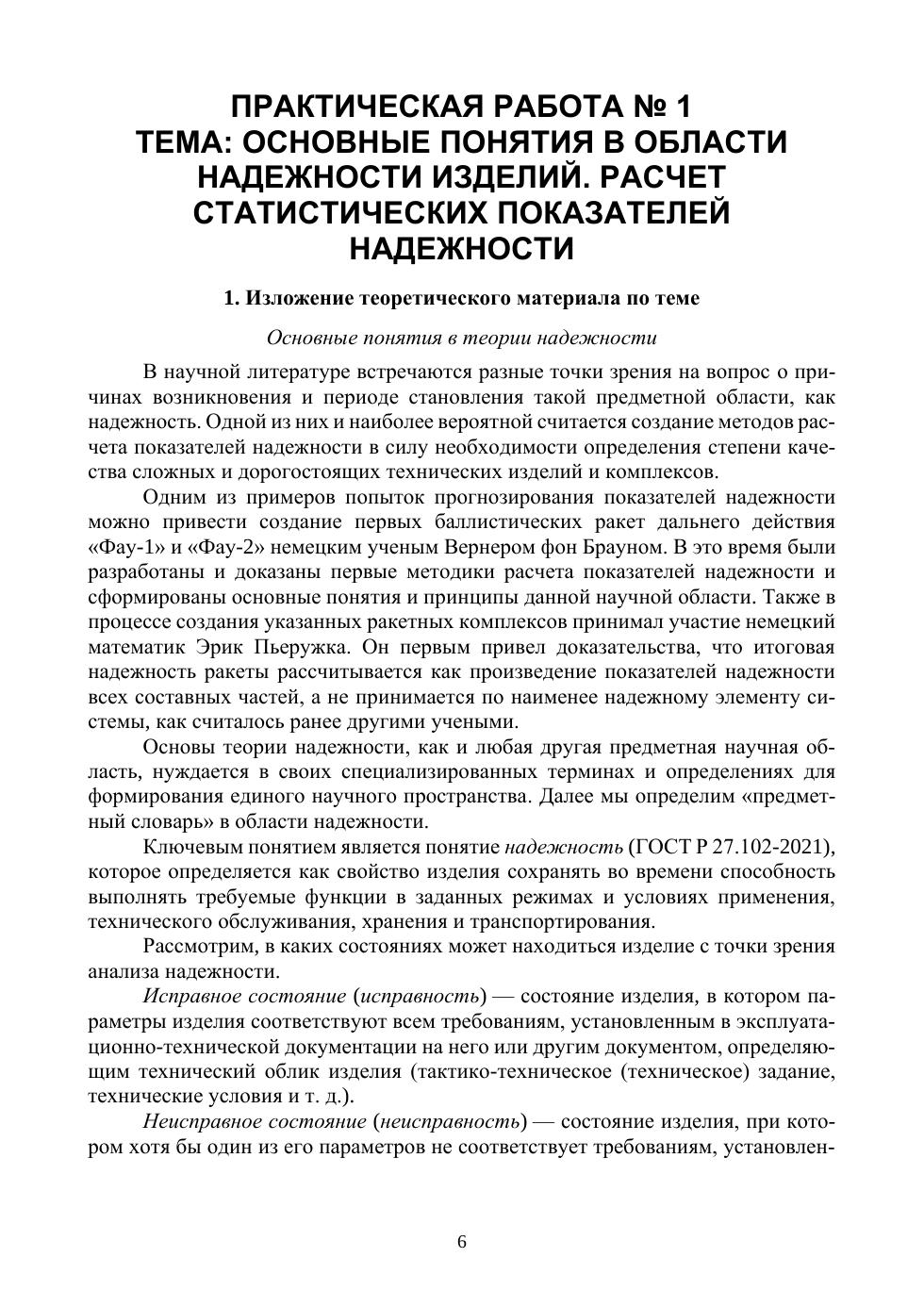 В учебном пособии изложены наиболее важные теоретические положения дисциплины «Основы теории надежности». Представлен практический материал в виде задач и их решений на различные законы распределения исследуемых отказов технических изделий, определение числовых характеристик при различных испытаниях и законах распределения на основе опытных данных, анализ и построение структурных и функциональных схем надежности. Содержится материал, направленный на освоение компетенций применения нормативно-технической документации и государственных стандартов, регламентирующих дея-тельность в области обеспечения надежности сложных технических изделий и систем на предприятиях оборонно-промышленного комплекса. Учебное пособие предназначено для студентов, обучающихся по специальностям «Проектирование, производство и эксплуатация ракет и ракетно-технических комплексов», «Информационные системы и технологии», «Управление качеством» и «Инноватика», и может быть использовано инженерно-техническими специалистами, студентами других вузов, которым требуется освоение практических и теоретических навыков для решения прикладных задач в области анализа и расчета показателей надёжности сложных технических комплексов.