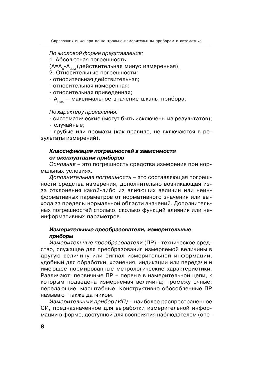 В справочнике детально описаны материалы как для обучения персонала КИПиА (история КИПиА, термины и определения, принципы действия простейших КИПиА), так и справочные данные, методики для ремонта, настройки и эксплуатации контрольно-измерительных приборов, а также сопутствующие справочные данные, необходимые для правильного расчета и выбора контрольно-измерительного прибора. Предназначен для инженеров по эксплуатации и ремонту контрольно-измерительных приборов для измерения технологических параметров температуры, давления, расхода и уровня. Справочник рекомендуется также руководителям служб КИПиА, мастерам, слесарям по КИПиА, прибористам, а также студентам и аспирантам, обучающимся по соответствующим специальностям.