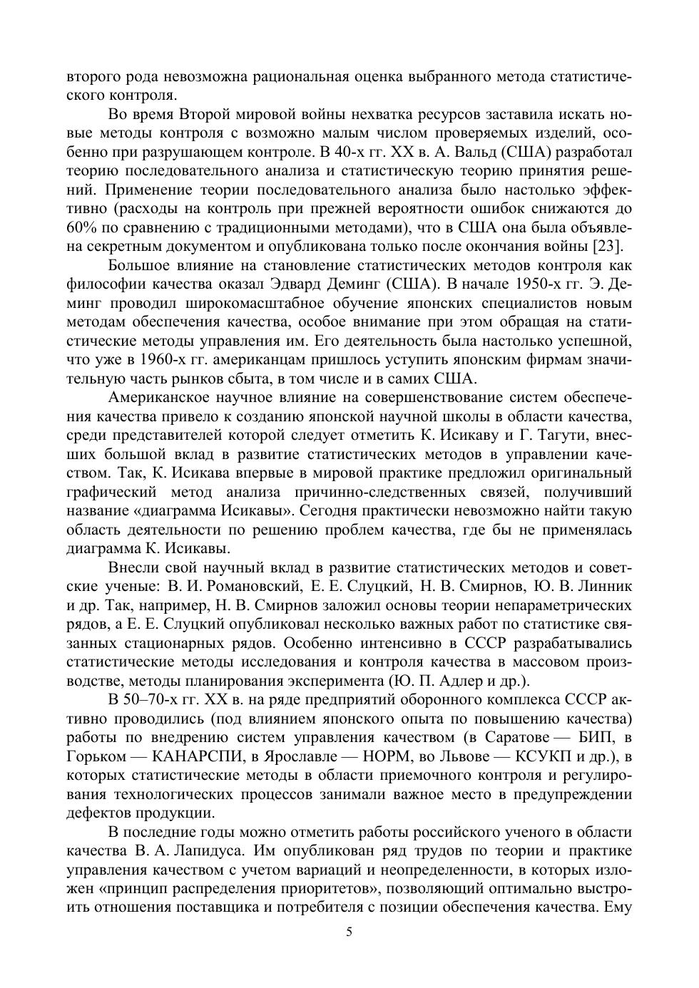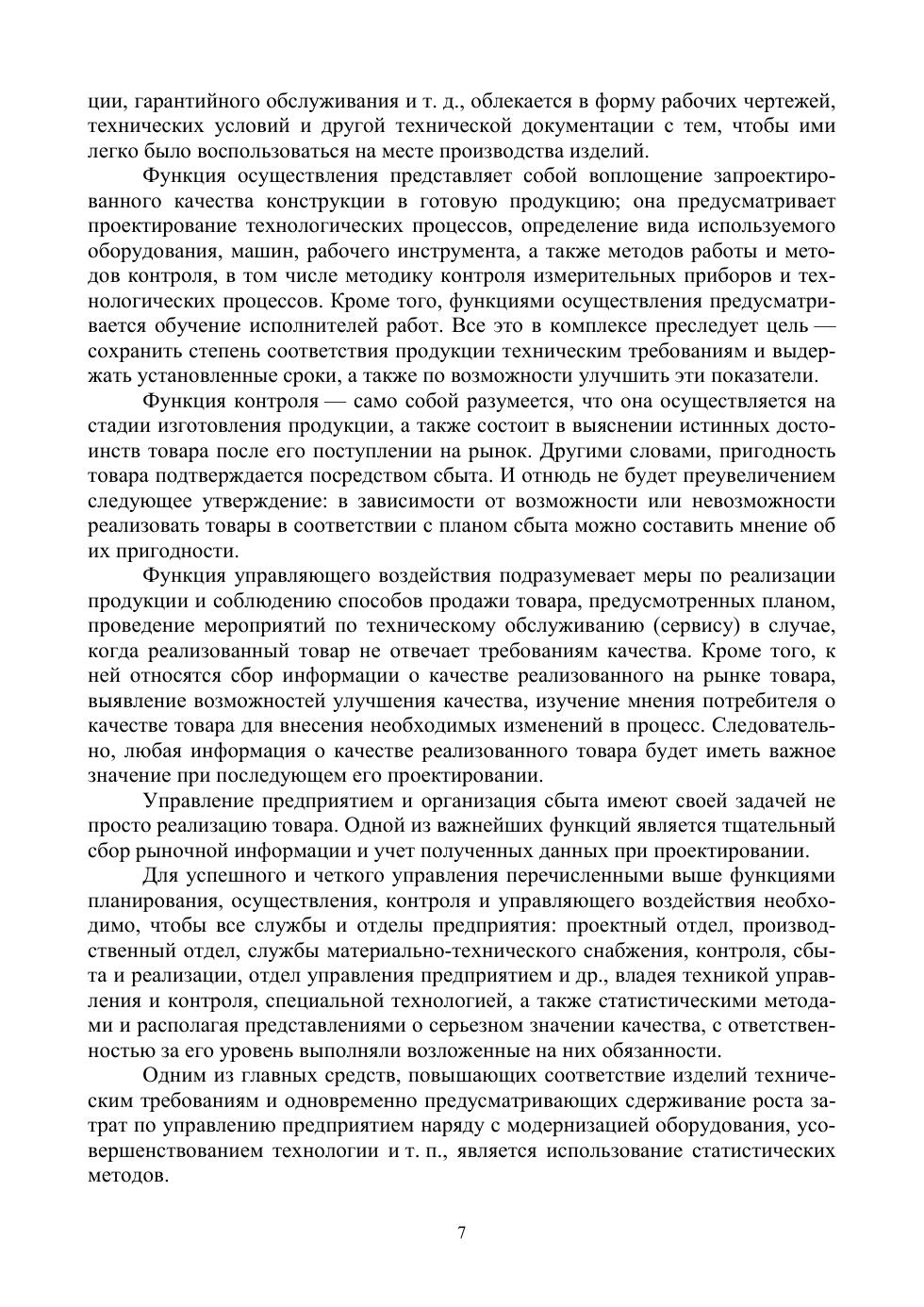 В учебном пособии рассмотрены история развития статистических методов контроля и управления качеством и их роль в системах качества, представлены теоретические основы статистического подхода к оценке качества продукции, изложены статистические методы, используемые в задачах управления качеством продукции: семь простых инструментов текущего контроля качества, статистическое управление процессами, приемочный контроль продукции. Пособие содержит примеры расчета типовых задач, в приложении приведены 100 вариантов заданий для выполнения курсовой работы. Соответствует современным требованиям Федерального государственного образовательного стандарта среднего профессионального образования и профессиональным квалификационным требованиям. Предназначено для учащихся среднетехнических учебных заведений, обучающихся по специальностям «Техническое регулирование и управление качеством» и «Управление качеством продукции, процессов и услуг (по отраслям)».