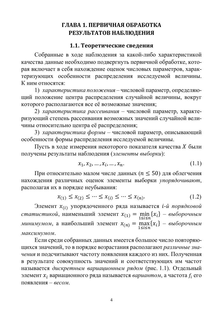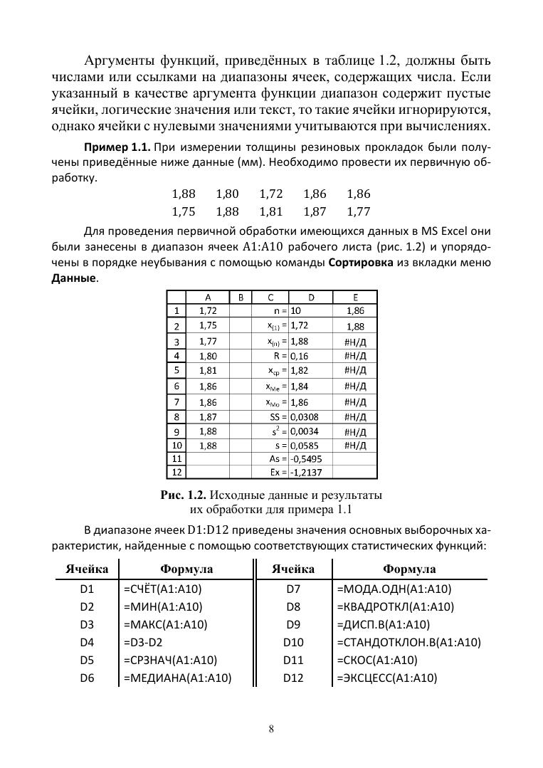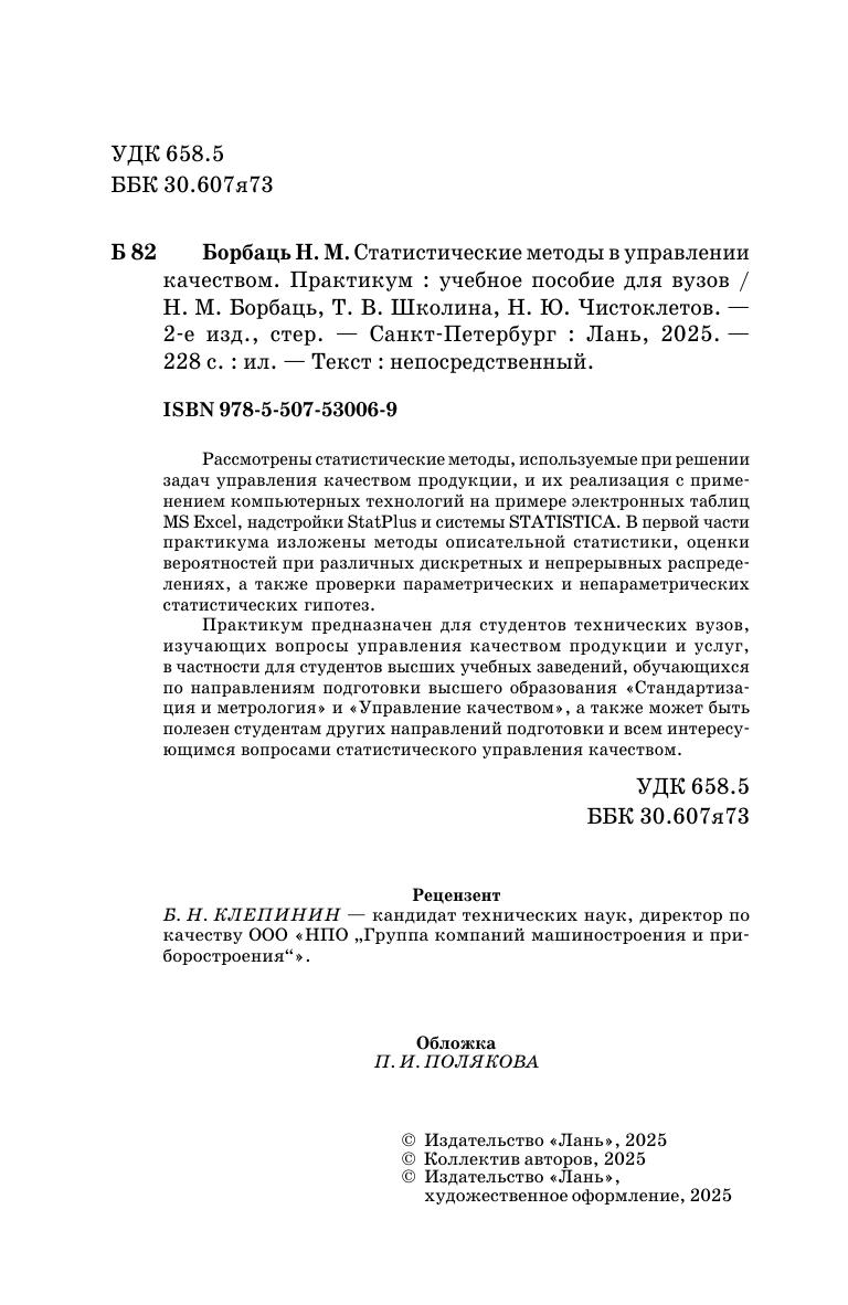 Рассмотрены статистические методы, используемые при решении задач управления качеством продукции, и их реализация с применением компьютерных технологий на примере электронных таблиц MS Excel, надстройки StatPlus и системы STATISTICA. В первой части практикума изложены методы описательной статистики, оценки вероятностей при различных дискретных и непрерывных распределениях, а также проверки параметрических и непараметрических статистических гипотез. Практикум предназначен для студентов технических вузов, изучающих вопросы управления качеством продукции и услуг, в частности для студентов высших учебных заведений, обучающихся по направлениям подготовки «Стандартизация и метрология» и «Управление качеством», а также может быть полезен студентам других направлений подготовки и всем интересующимся вопросами статистического управления качеством.