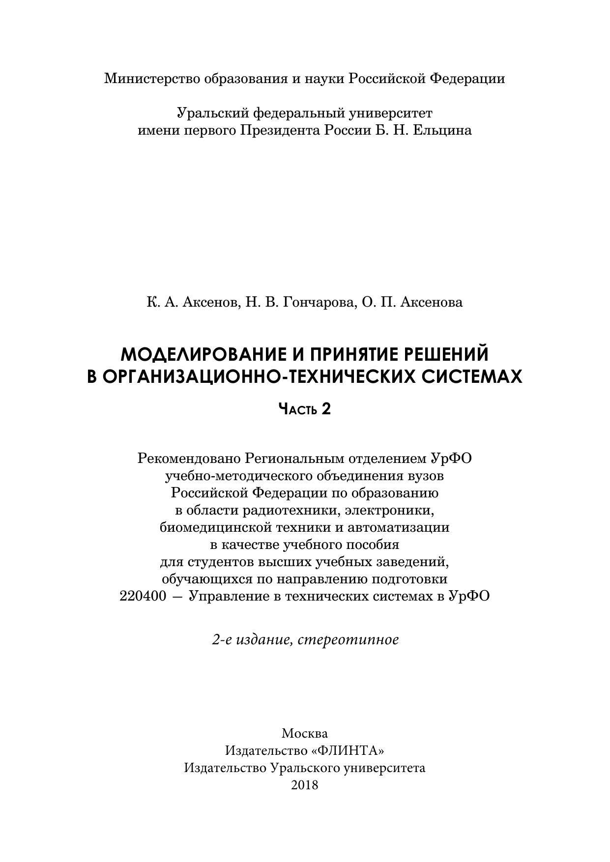 Моделирование и принятие решений в организационно-технических системах