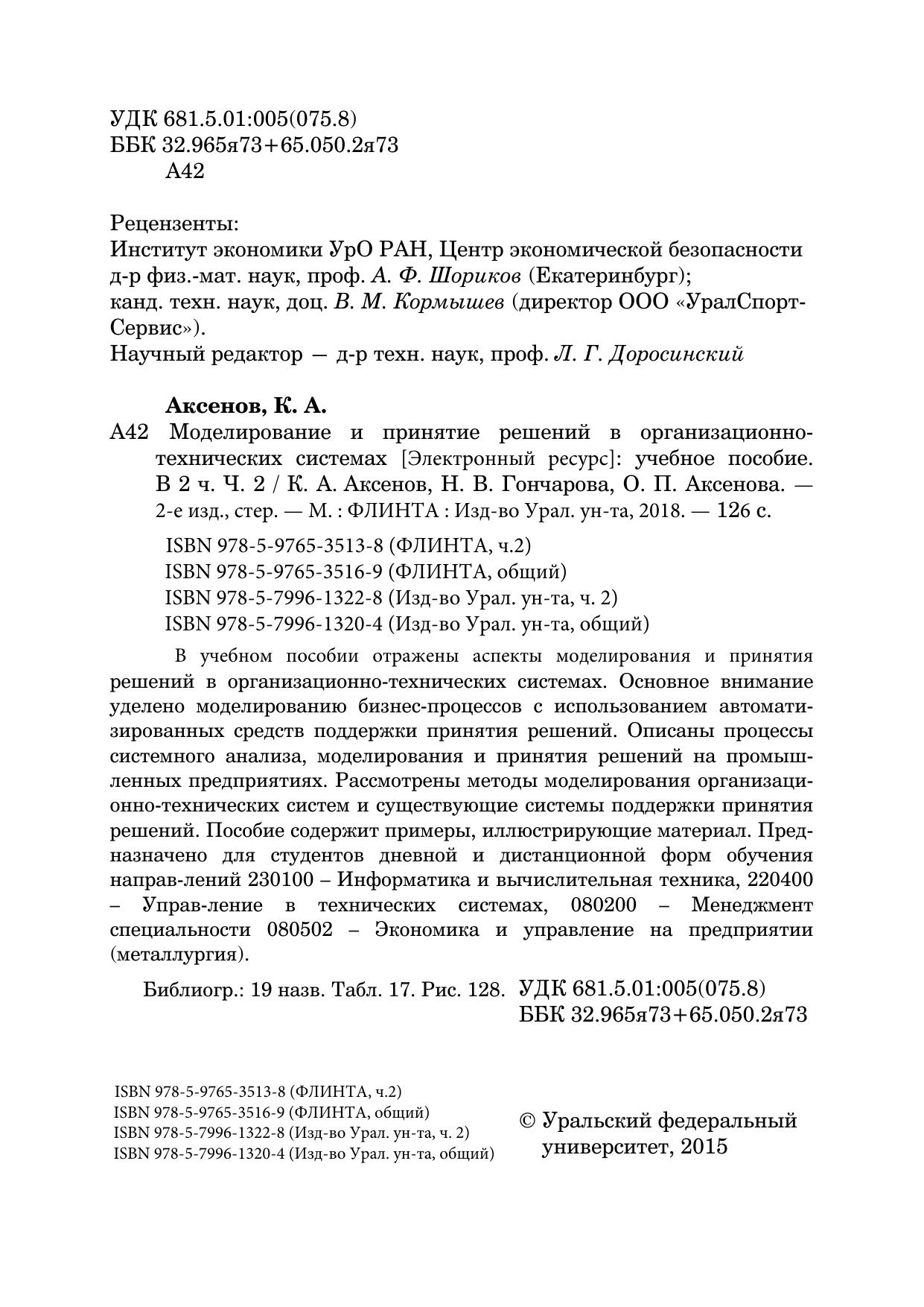 В учебном пособии отражены аспекты моделирования и принятия решений в организационно-технических системах. Основное внимание уделено моделированию бизнес-процессов с использованием автоматизированных средств поддержки принятия решений. Описаны процессы системного анализа, моделирования и принятия решений на промышленных предприятиях. Рассмотрены методы моделирования организационно-технических систем и существующие системы поддержки принятия решений. Пособие содержит примеры, иллюстрирующие материал. Предназначено для студентов дневной и дистанционной форм обучения направлений 230100 – Информатика и вычислительная техника, 220400 – Управ-ление в технических системах, 080200 – Менеджмент специальности 080502 – Экономика и управление на предприятии (металлургия).