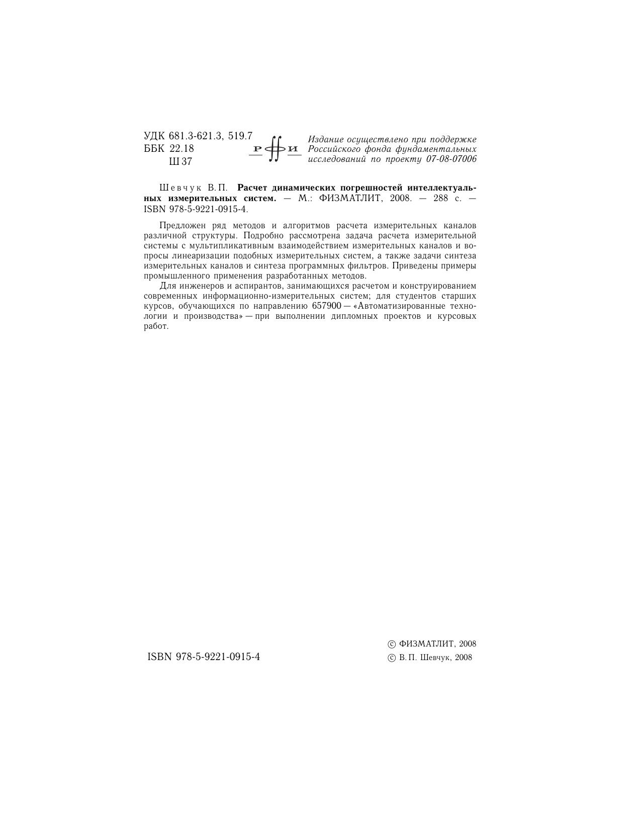 Предложен ряд методов и алгоритмов расчета измерительных каналов различной структуры. Подробно рассмотрена задача расчета измерительной системы с мультипликативным взаимодействием измерительных каналов и вопросы линеаризации подобных измерительных систем, а также задачи синтеза измерительных каналов и синтеза программных фильтров. Приведены примеры промышленного применения разработанных методов. Для инженеров и аспирантов, занимающихся расчетом и конструированием современных информационно-измерительных систем для студентов старших курсов, обучающихся по направлению 657900 - «Автоматизированные технологии и производства» - при выполнении дипломных проектов и курсовых работ.