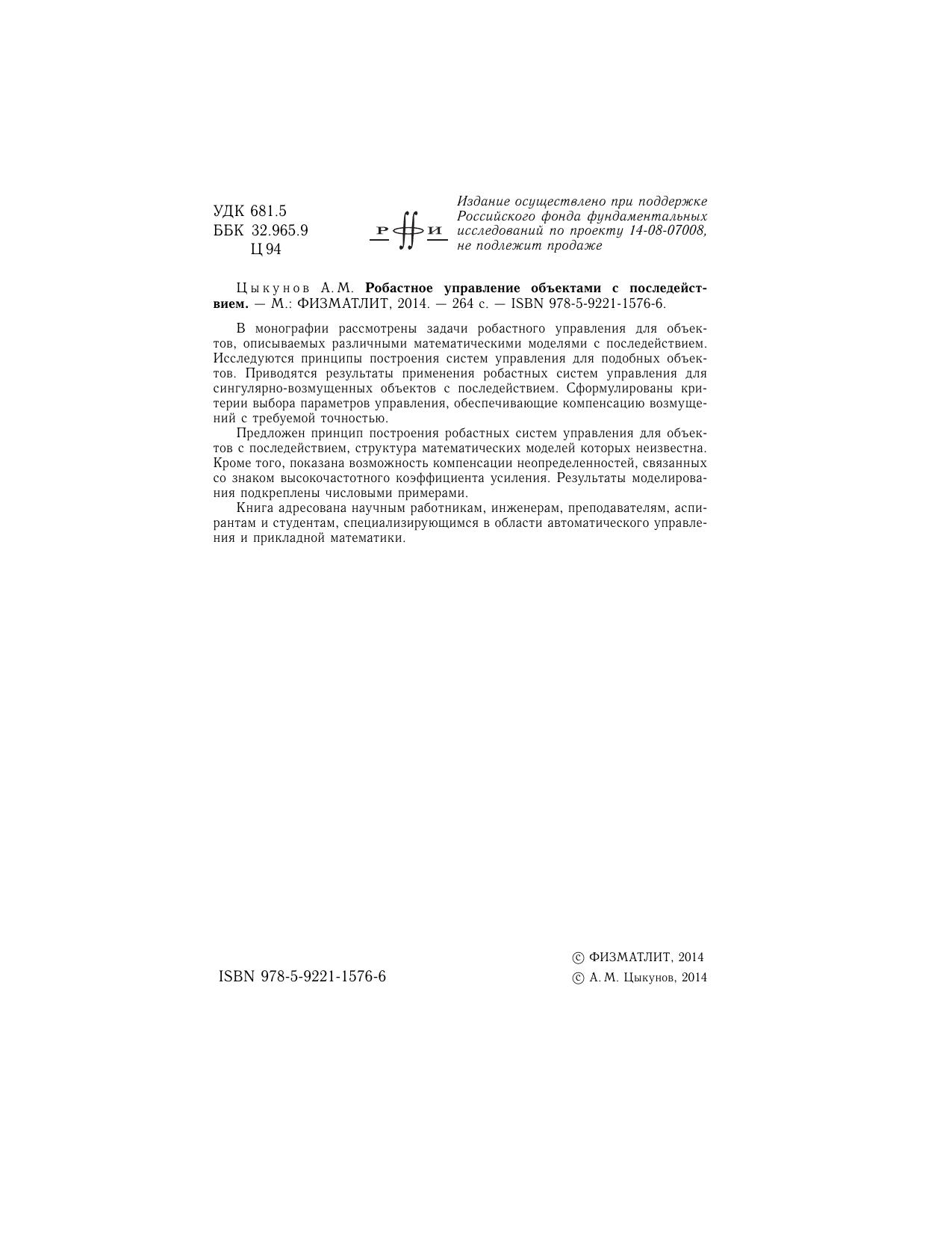 Книга адресована научным работникам, инженерам, преподавателям, аспирантам и студентам, специализирующимся в области автоматического управления и прикладной математики.
