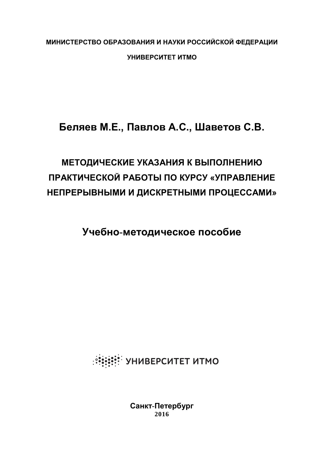 Методические указания к выполнению практической работы по курсу «Управление непрерывными и дискретными процессами»