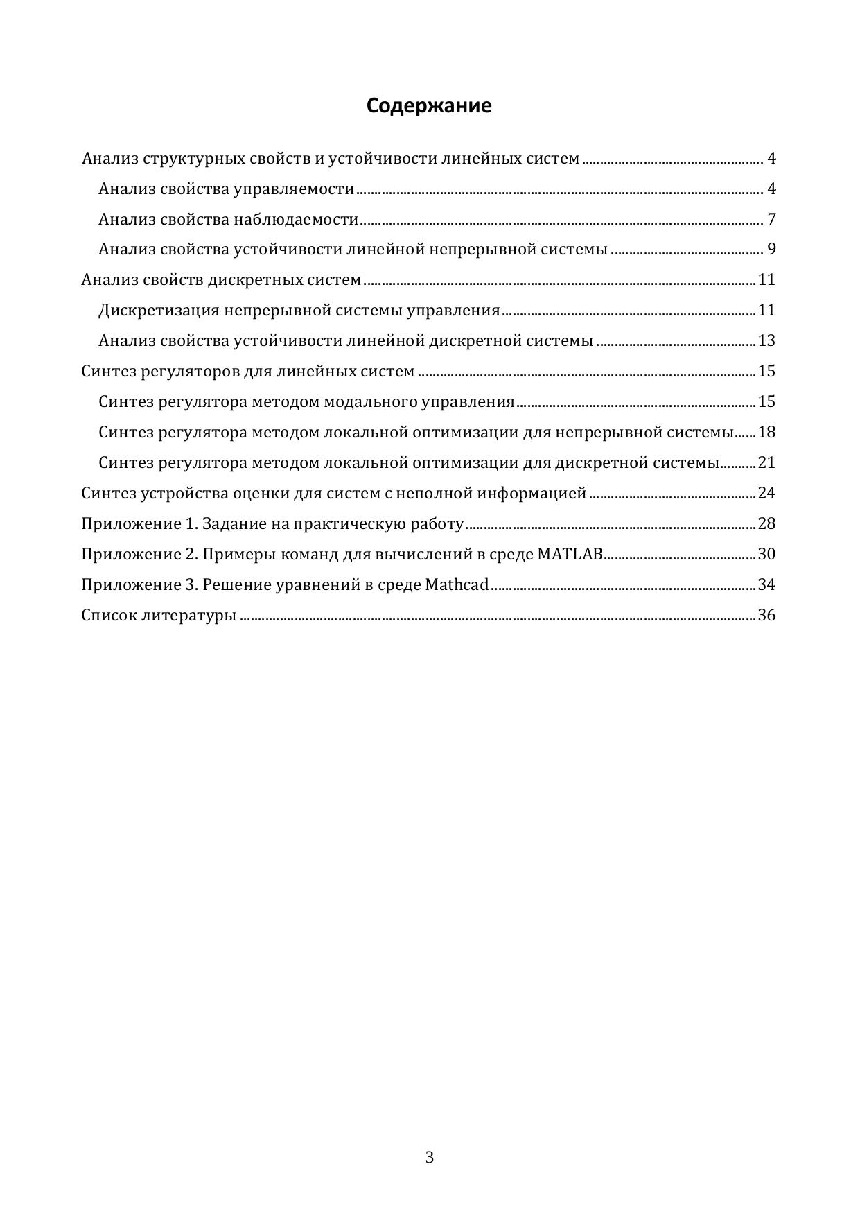 В учебно-методическом пособии приведены методы описания непрерывных и дискретных процессов управления, основные подходы к анализу устойчивости линейных и синтезу модальных управлений. Особое внимание уделено качественной экспоненциальной устойчивости. Рассмотрены практические примеры, наглядно демонстрирующие изложенные методы и подходы.