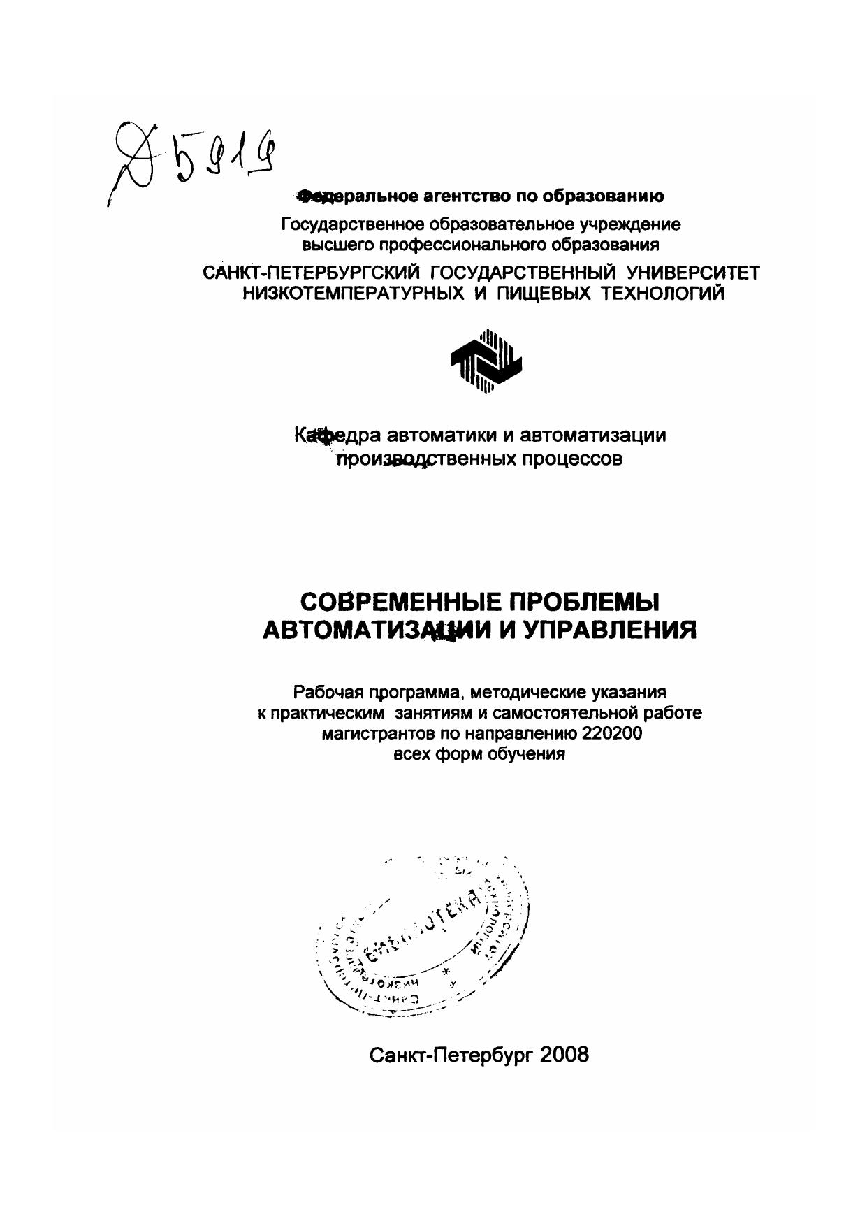 Современные проблемы автоматизации и управления: Рабочая программа, метод, указания к практическим занятиям и самостоятельной работе