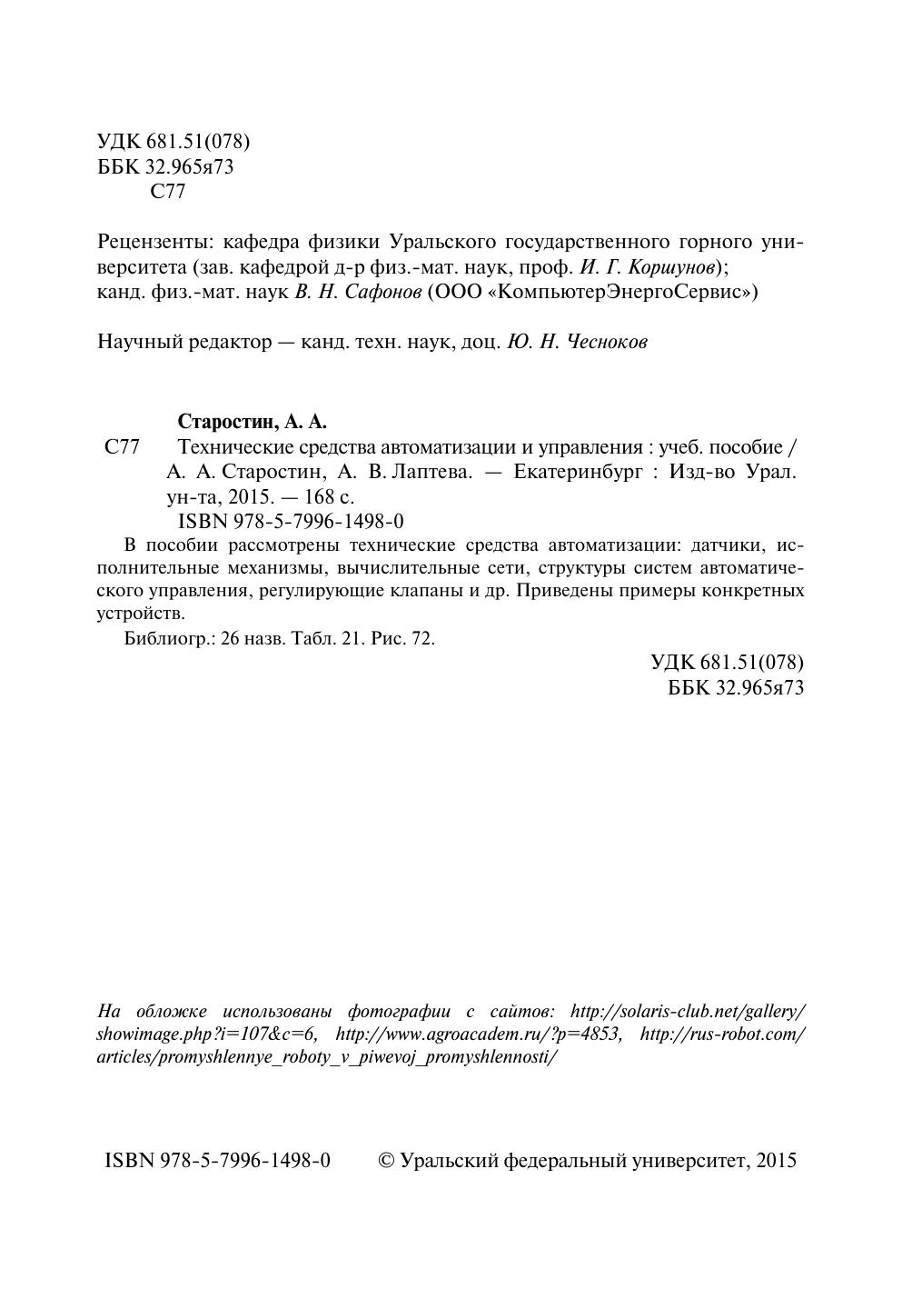 В пособии рассмотрены технические средства автоматизации: датчики, исполнительные механизмы, вычислительные сети, структуры систем автоматического управления, регулирующие клапаны и др. Приведены примеры конкретных устройств.