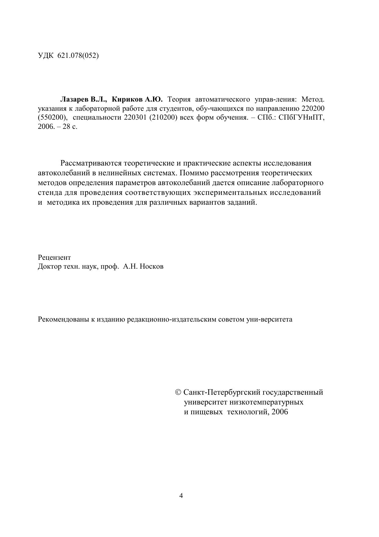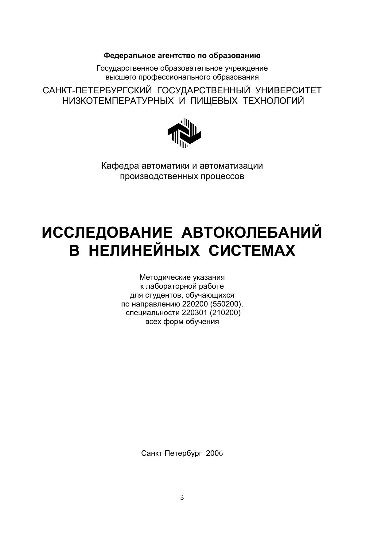 Рассматриваются теоретические и практические аспекты исследования автоколебаний в нелинейных системах. Помимо рассмотрения теоретических методов определения параметров автоколебаний дается описание лабораторного стенда для проведения соответствующих экспериментальных исследований и методика их проведения для различных вариантов заданий.