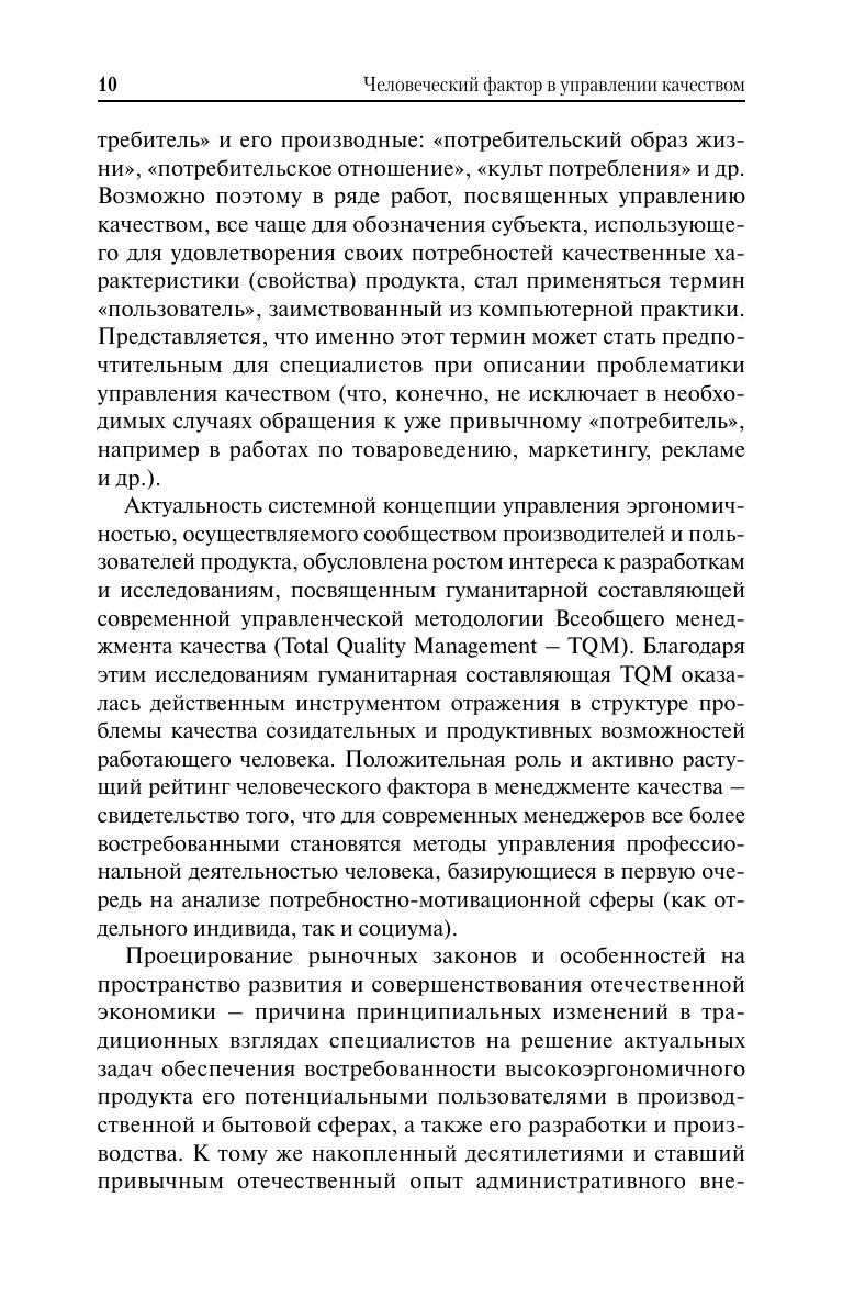 Раскрыта роль человеческого фактора во Всеобщем управлении качеством. Сформулирована концепция управления эргономичностью и представлен системный подход к эффективному решению на ее основе комплекса таких ключевых задач, как использование инновационного потенциала эргодизайна, анализ и выявление взаимосвязи и взаимозависимости безопасных и комфортных условий труда с учетом человеческих рисков, реализация организационно-психологического и социотехнического обеспечения менеджмента качества, формирования бизнес-модели управления эргономичностью и др. Для студентов вузов, получающих образование по направлению подготовки «Менеджмент». Может использоваться широким кругом специалистов инженерно-технического и экономического профиля, работающих в сфере управления качеством. Представляет интерес для руководителей и менеджеров среднего звена предприятий и организаций.