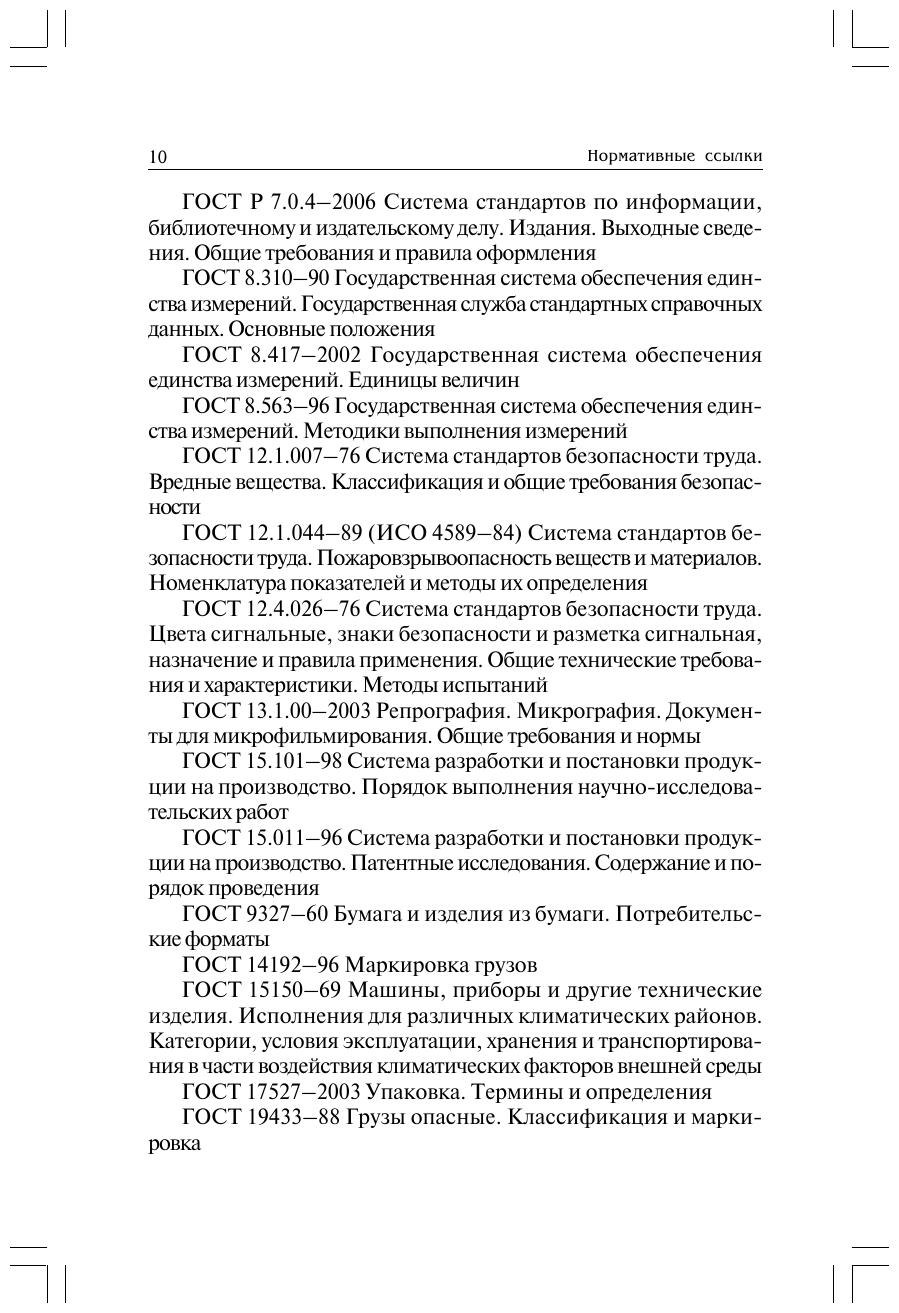 На единой методической основе показана возможность реализации результатов научно-исследовательской работы путем разработки проекта стандарта. Все виды работ выполнены в соответствии с требованиями, установленными в нормативных документах. Представление методического материала отвечает ГОСТу 7.32- 2001, что обеспечивает адаптацию обучающихся к существующим изменениям в оформлении, которые приняты в XXI веке в нормативно-технических документах. Разделы 1-7 пособия могут быть использованы для проведения практических занятий по дисциплине «Метрология, стандартизация и сертификация». Для студентов высших учебных заведений, аспирантов и инженеров.