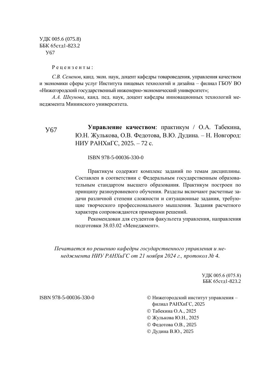 Управление качеством: практикум