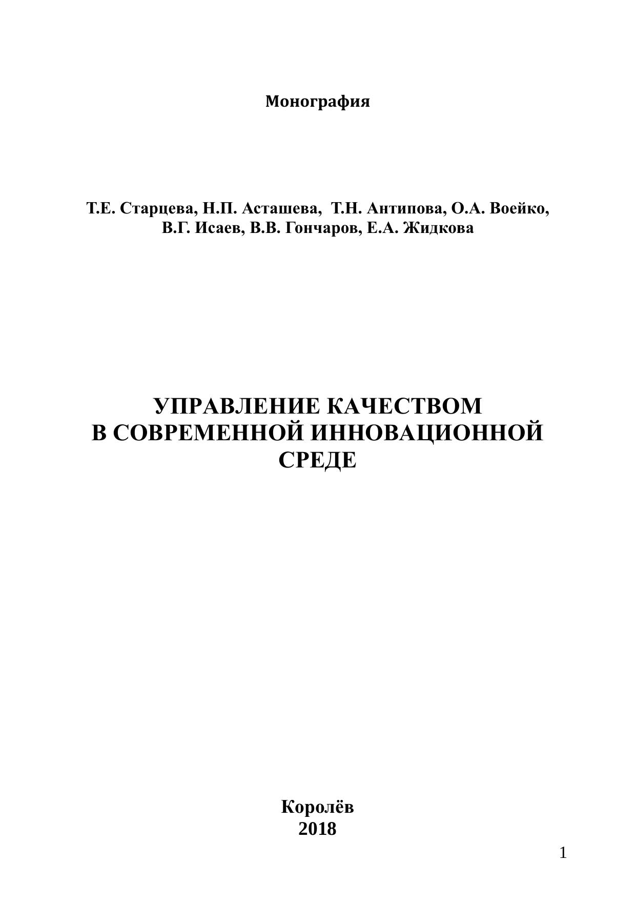 Монография представляет собой научное исследование одной из самых актуальных для рыночной экономики России проблем, а именно – управление качеством в современной инновационной среде. Монография представляет интерес для научных работников, аспирантов, преподавателей и студентов вузов, изучающих проблемы менеджмента, а также специалистов, участвующих в формировании системы развития промышленности