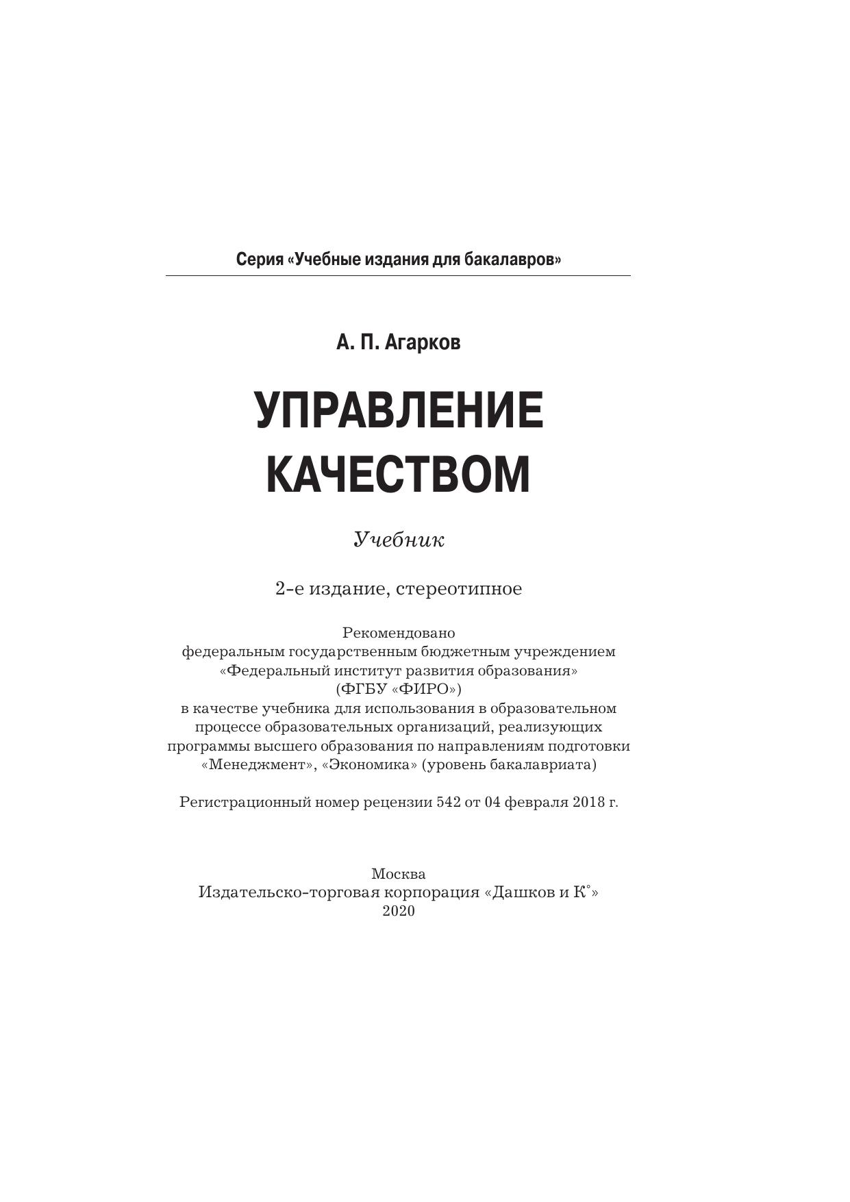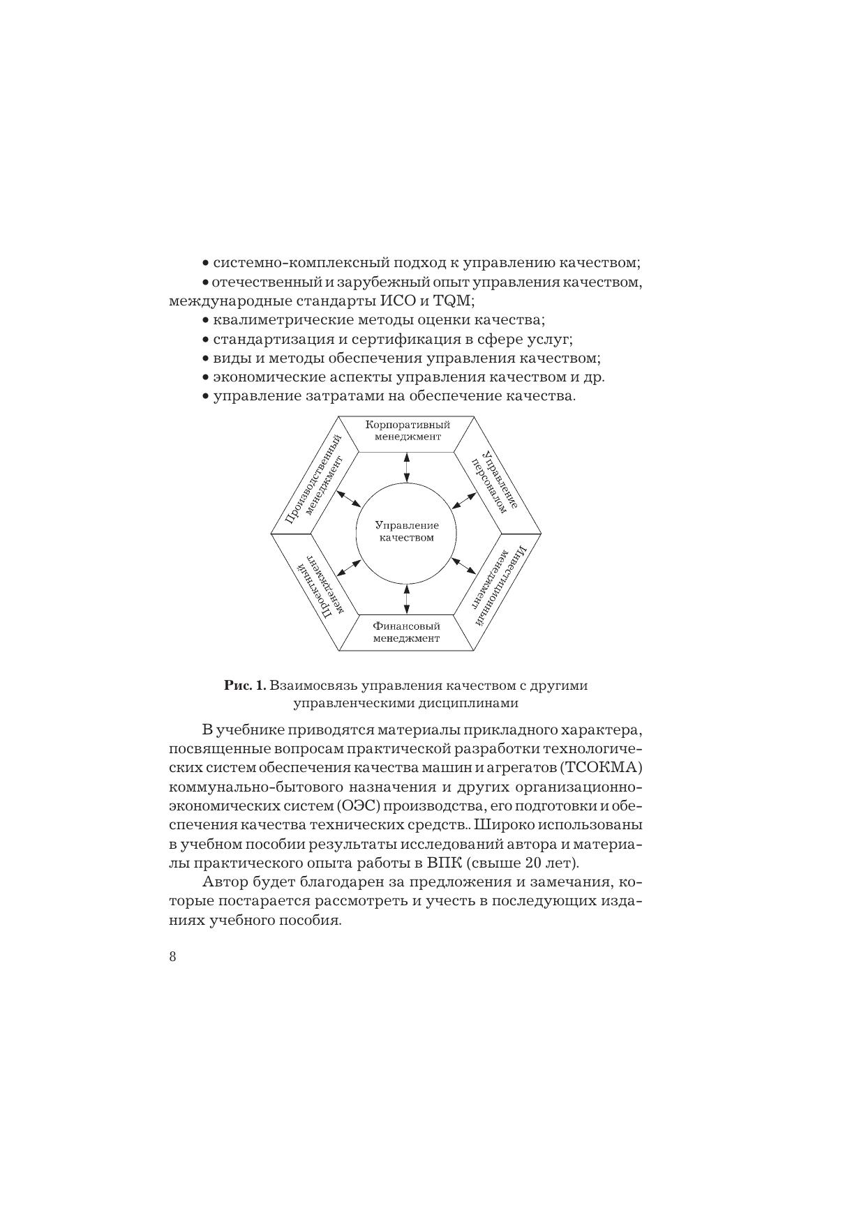 Издание соответствует Федеральному государственному бразовательному стандарту высшего профессионального образования третьего поколения. В учебнике рассматриваются вопросы актуальности системно-комплексного решения проблем качества, эволюции подходов к управлению качеством, разработки систем менеджмента качества в соответствии с требованиями международных стандартов ИСО серии 9000, всеобщего управления качеством (TQM) и др., а также направления стандартизации, сертификации и технического регулирования, оценки уровня качества, экономические аспекты управления качеством. Особое внимание в прикладном плане уделено вопросам разработки и внедрения организационно-экономических систем производства, его инфраструктурно-комплексной подготовки и обеспечения качества машин. Для студентов бакалавриата, обучающихся по направлениям подготовки «Менеджмент», «Экономика».