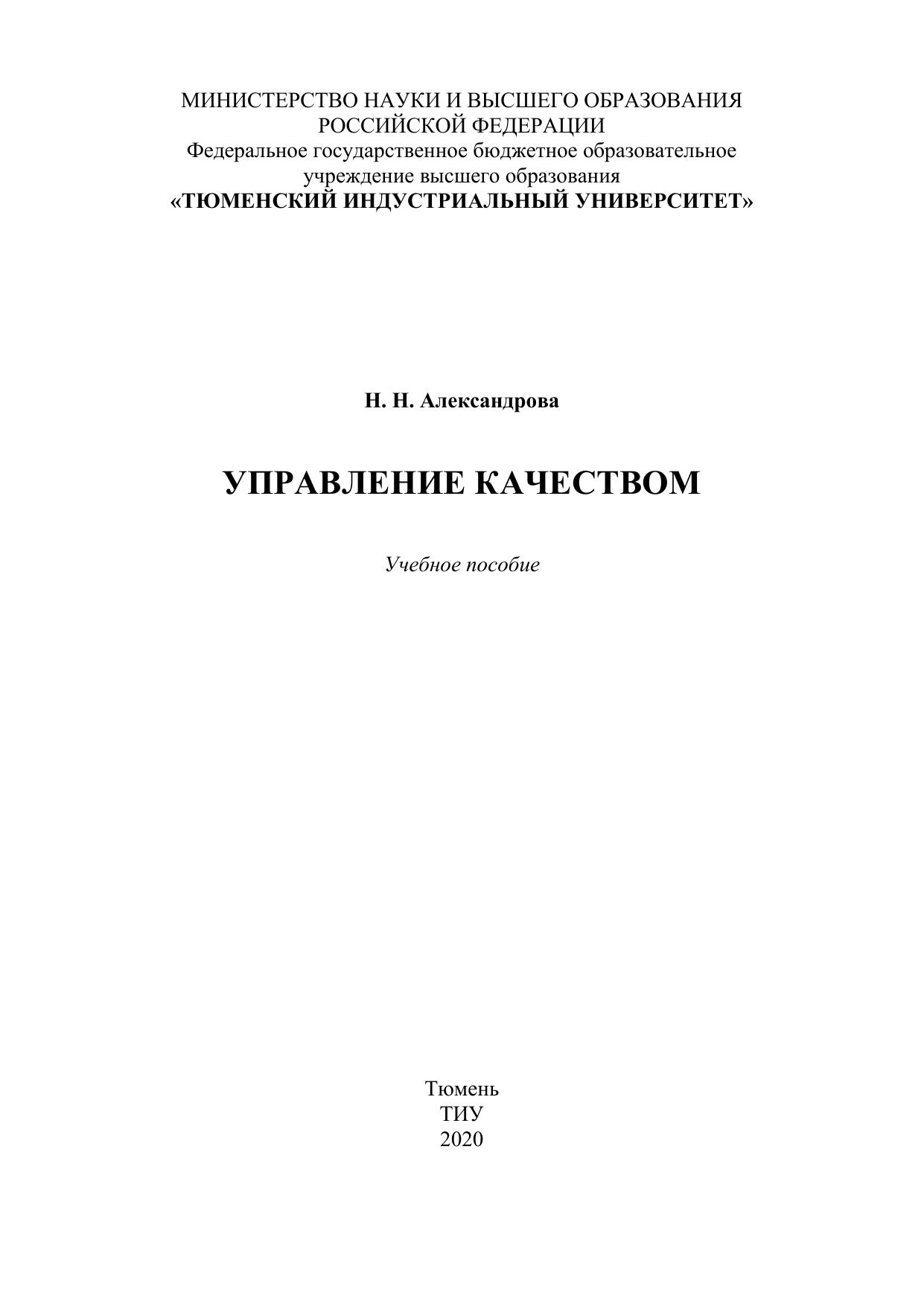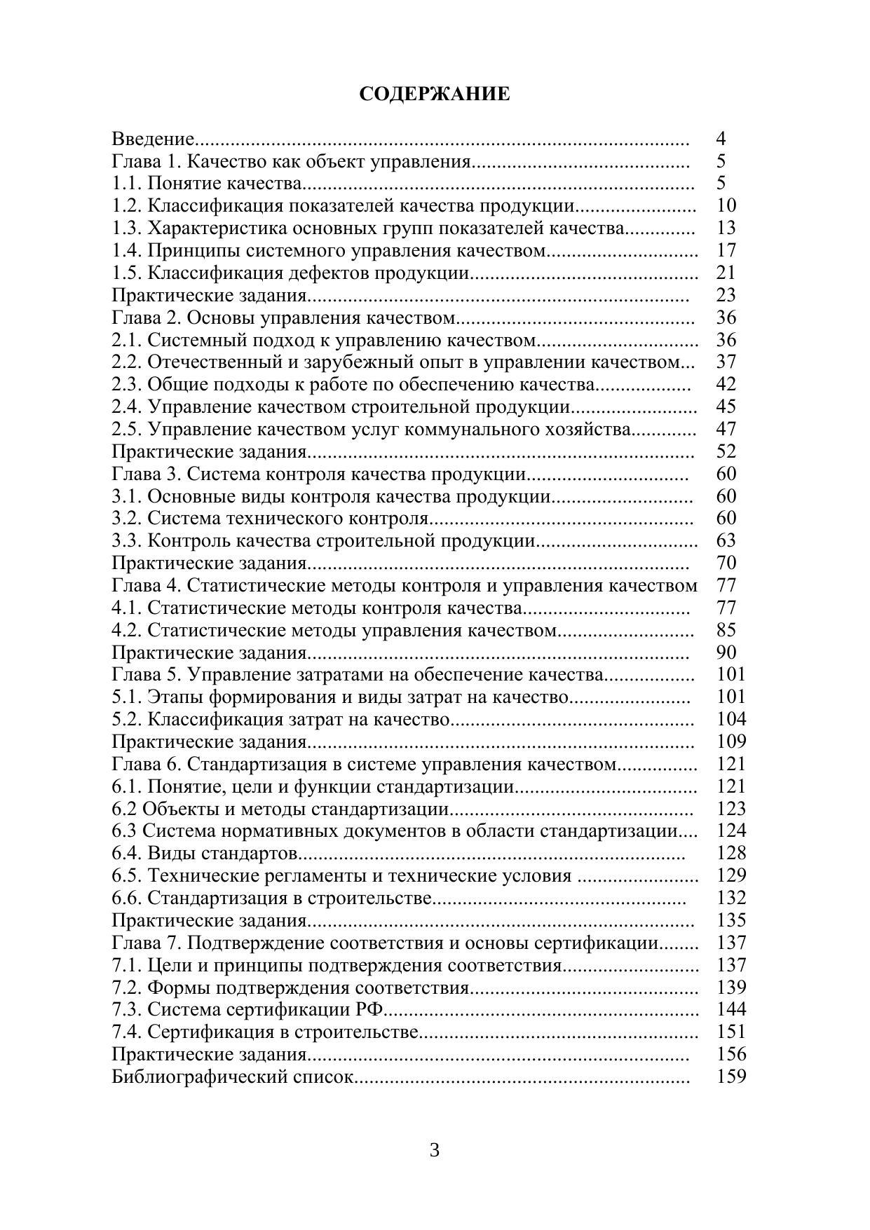 В учебном пособии раскрывается сущность процесса управления качеством, основанная на принципах всеобщего менеджмента качества, представлены методические аспекты управления и обеспечения качеством, основы стандартизации и сертификации продукции, работ и систем менеджмента качества. Отражена роль управления качеством в условиях рыночной экономики, представлен международный опыт, статистические приемы и рекомендации международных стандартов по управлению качеством. Предложены типовые задания по курсу для закрепления, систематизации и самоаттестации полученных знаний. Учебное пособие предназначено для обучающихся по направлению подготовки 08.03.01 "Строительство" профиль "Водоснабжение и водоотведение" для самостоятельного изучения основ управления качеством.