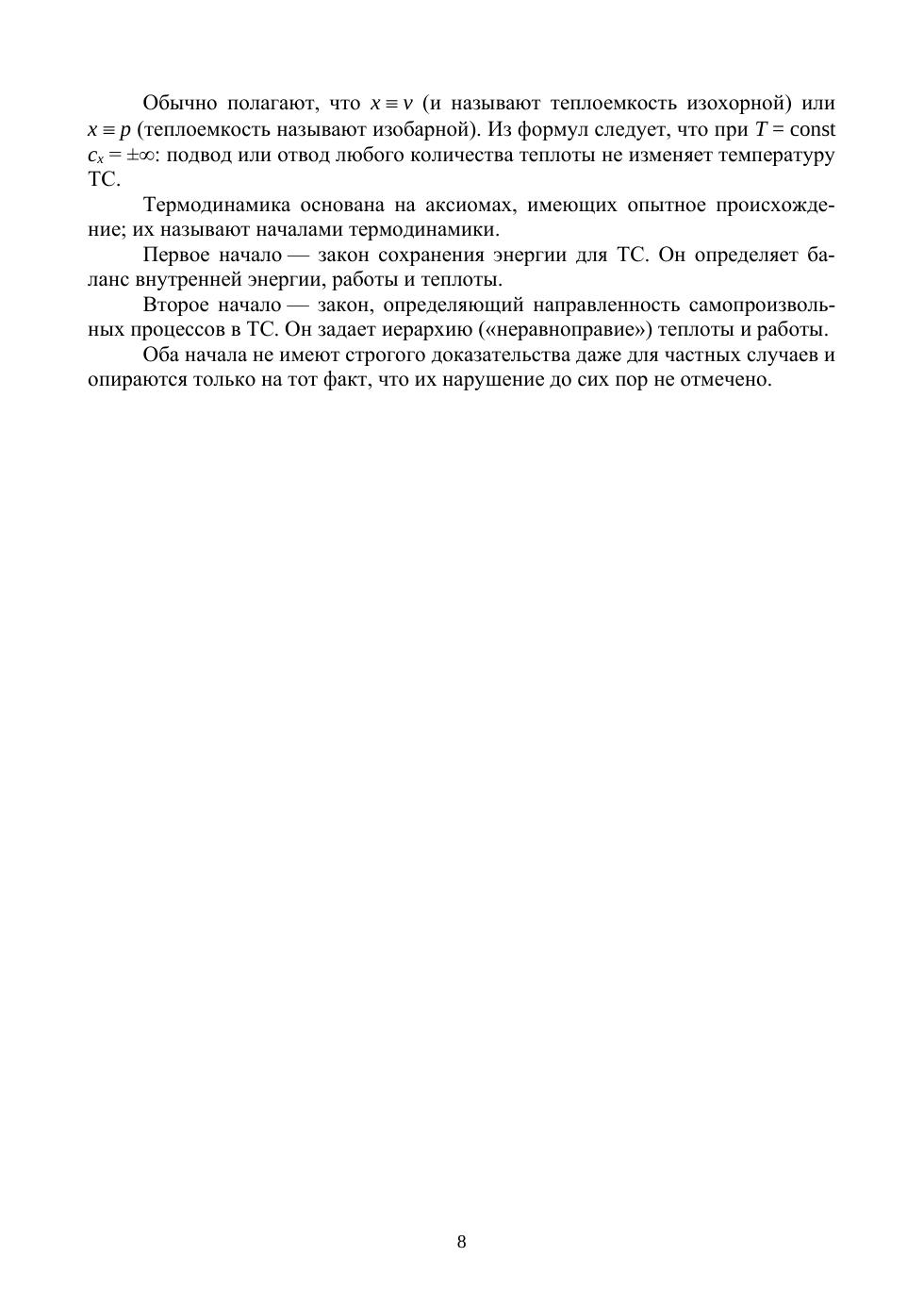 Учебное пособие вводит основные понятия термодинамики. В число основных разделов входят понятия о термодинамической системе и рабочих телах, первое и второе начала термодинамики, уравнение состояния и процессы с идеальным газом, энтропия, влажный воздух, термодинамика реальных рабочих тел. Рассмотрены циклы поршневых двигателей внутреннего сгорания, газотурбинных установок, паросиловых установок, холодильных машин и тепловых насосов. Даётся пример эксергетического расчёта оборудования в цикле Ренкина. Пособие построено на материале семестрового курса лекций для студентов теплоэнергетических, энергомашиностроительных и других специальностей, основанных на идеях и методах термодинамики. Может быть полезным для всех интересующихся процессами преобразования энергии в различных областях.