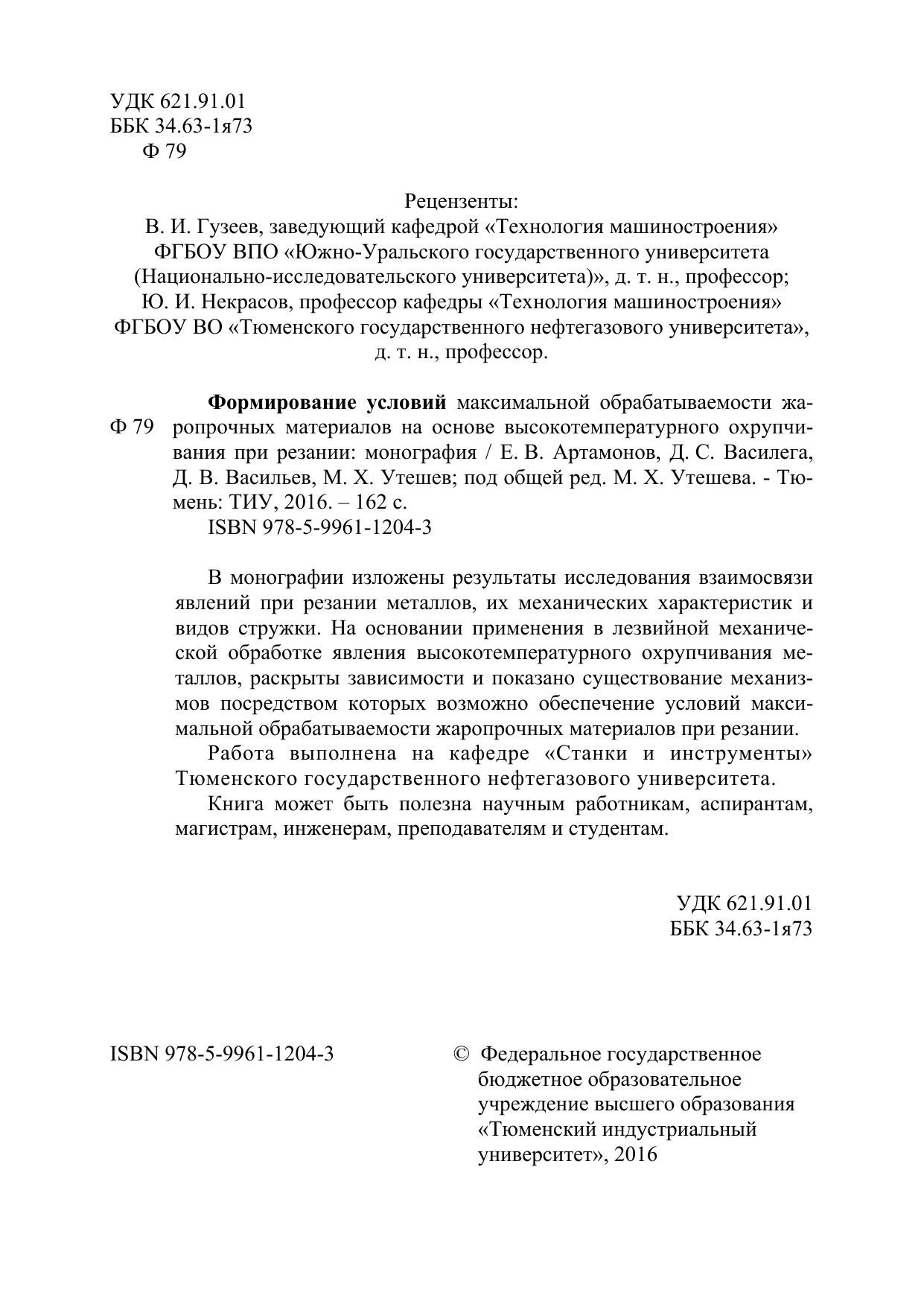 В монографии изложены результаты исследования взаимосвязи явлений при резании металлов, их механических характеристик и видов стружки. На основании применения в лезвийной механической обработке явления высокотемпературного охрупчивания металлов, раскрыты зависимости и показано существование механизмов посредством которых возможно обеспечение условий максимальной обрабатываемости жаропрочных материалов при резании.