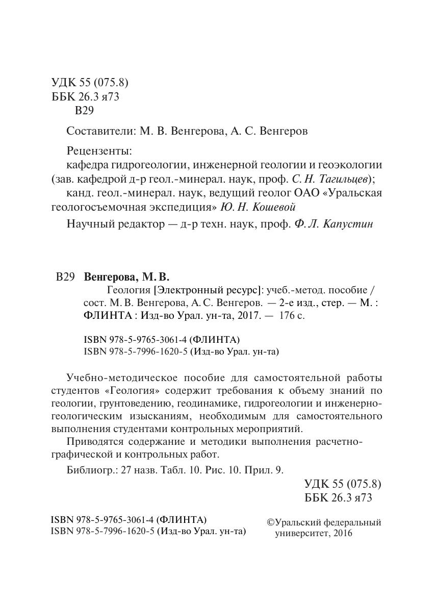 Учебно-методическое пособие для самостоятельной работы студентов «Геология» содержит требования к объему знаний по геологии, грунтоведению, геодинамике, гидрогеологии и инженерно-геологическим изысканиям, необходимым для самостоятельного выполнения студентами контрольных мероприятий. Приводятся содержание и методики выполнения расчетно-графической и контрольных работ.