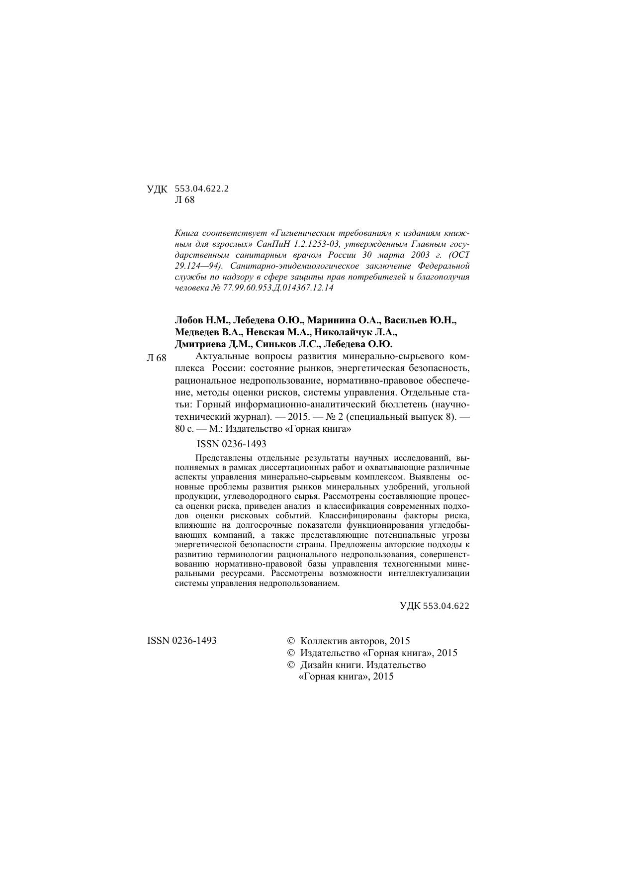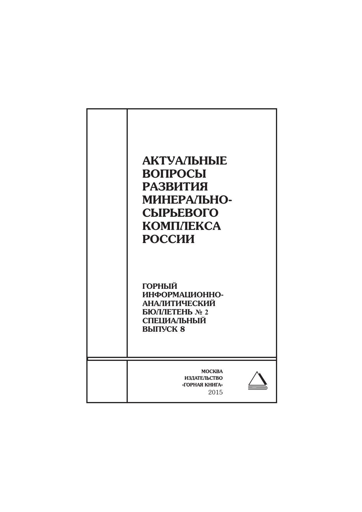 Актуальные вопросы развития минерально-сырьевого комплекса России: состояние рынков, энергетическая безопасность, рациональное недропользование, нормативно-правовое обеспечение, методы оценки рисков, системы управления. Отдельные статьи: Горный информационно-аналитический бюллетень (научно-технический журнал)