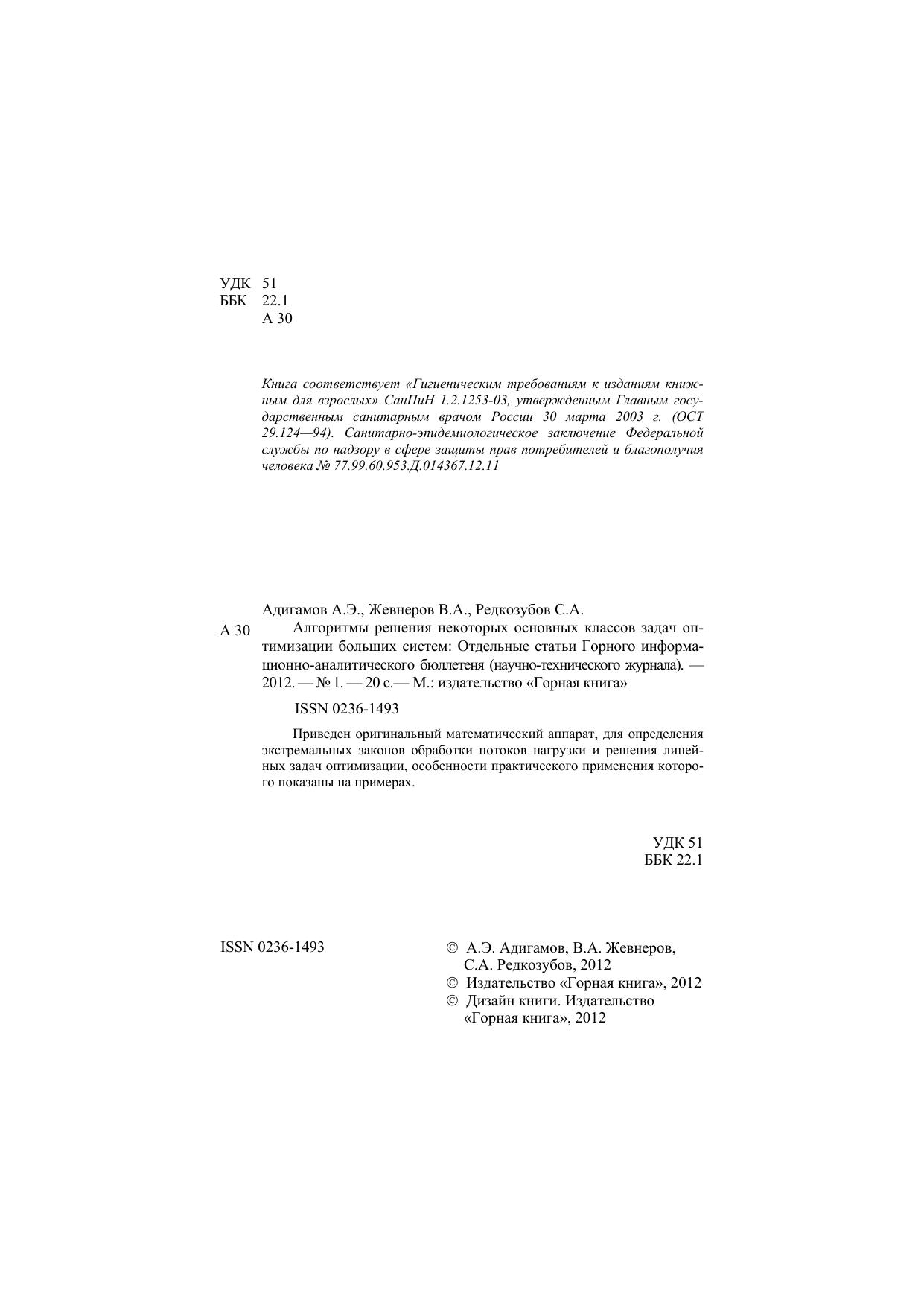 Алгоритмы решения некоторых основных классов задач оптимизации больших систем