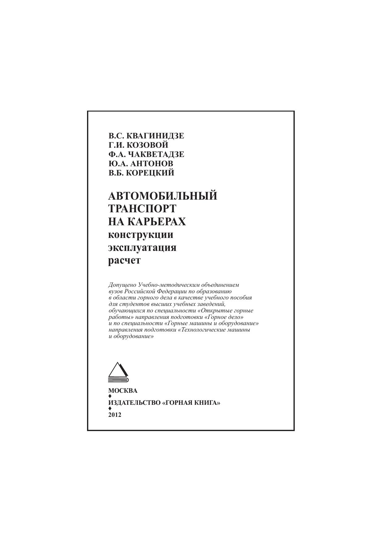 Автомобильный транспорт на карьерах. Конструкции, эксплуатация, расчет: Учебное пособие