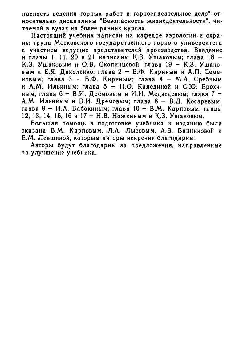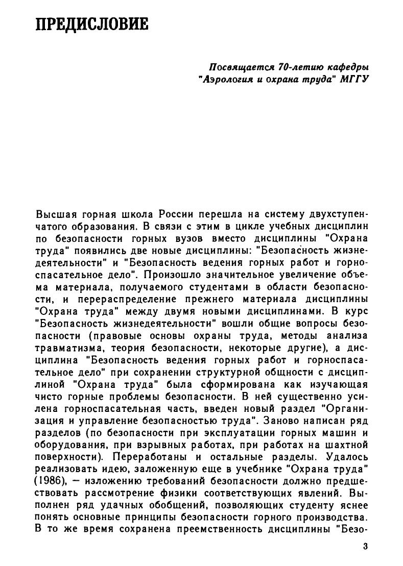 Дан анализ негативных факторов, возникающих при разработке месторождений полезных ископаемых и представляющих угрозу здоровью и жизни человека. Большое внимание уделено мерам безопасности основных процессов горного производства как при строительстве, так и эксплуатации предприятий. Кратко изложены методы борьбы с шумом и вибрациями, пылью и радиоактивным излучением. Подробно рассмотрены аварии на горных предприятиях, методы и средства их профилактики и ликвидации. Для студентов горных специальностей высших учебных заведений.