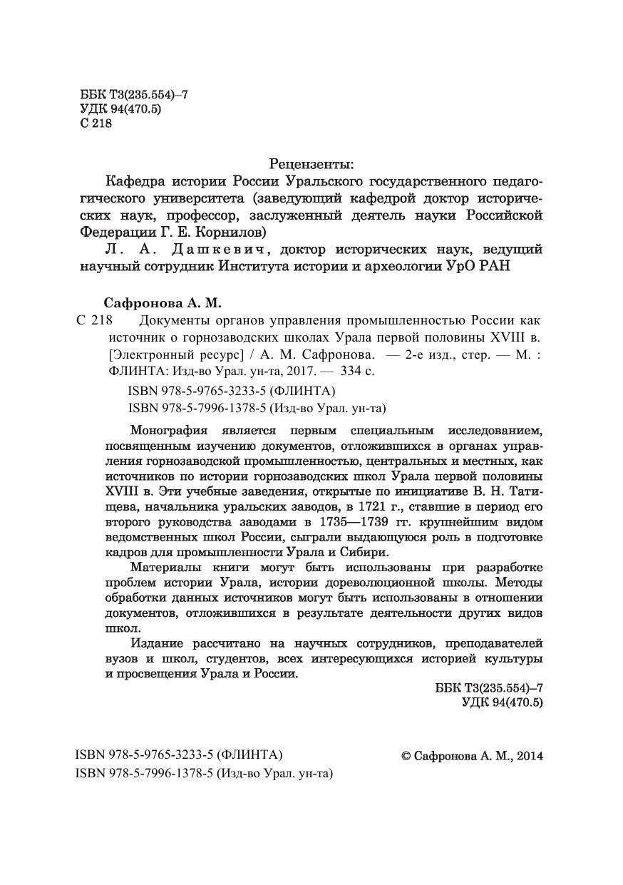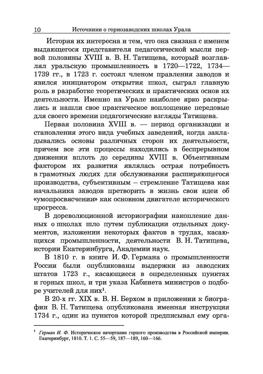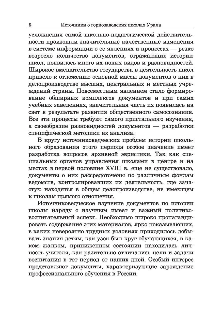 Монография является первым специальным исследованием, посвященным изучению документов, отложившихся в органах управления горнозаводской промышленностью, центральных и местных, как источников по истории горнозаводских школ Урала первой половины XVIII в. Эти учебные заведения, открытые по инициативе В. Н. Татищева, начальника уральских заводов, в 1721 г., ставшие в период его второго руководства заводами в 1735—1739 гг. крупнейшим видом ведомственных школ России, сыграли выдающуюся роль в подготовке кадров для промышленности Урала и Сибири. Материалы книги могут быть использованы при разработке проблем истории Урала, истории дореволюционной школ ы. Методы обработки данных источников могут быть использованы в отношении документов, отложившихся в результате деятельности других видов школ. Издание рассчитано на научных сотрудников, преподавателей вузов и школ, студентов, всех интересующихся историей культуры и просвещения Урала и России.