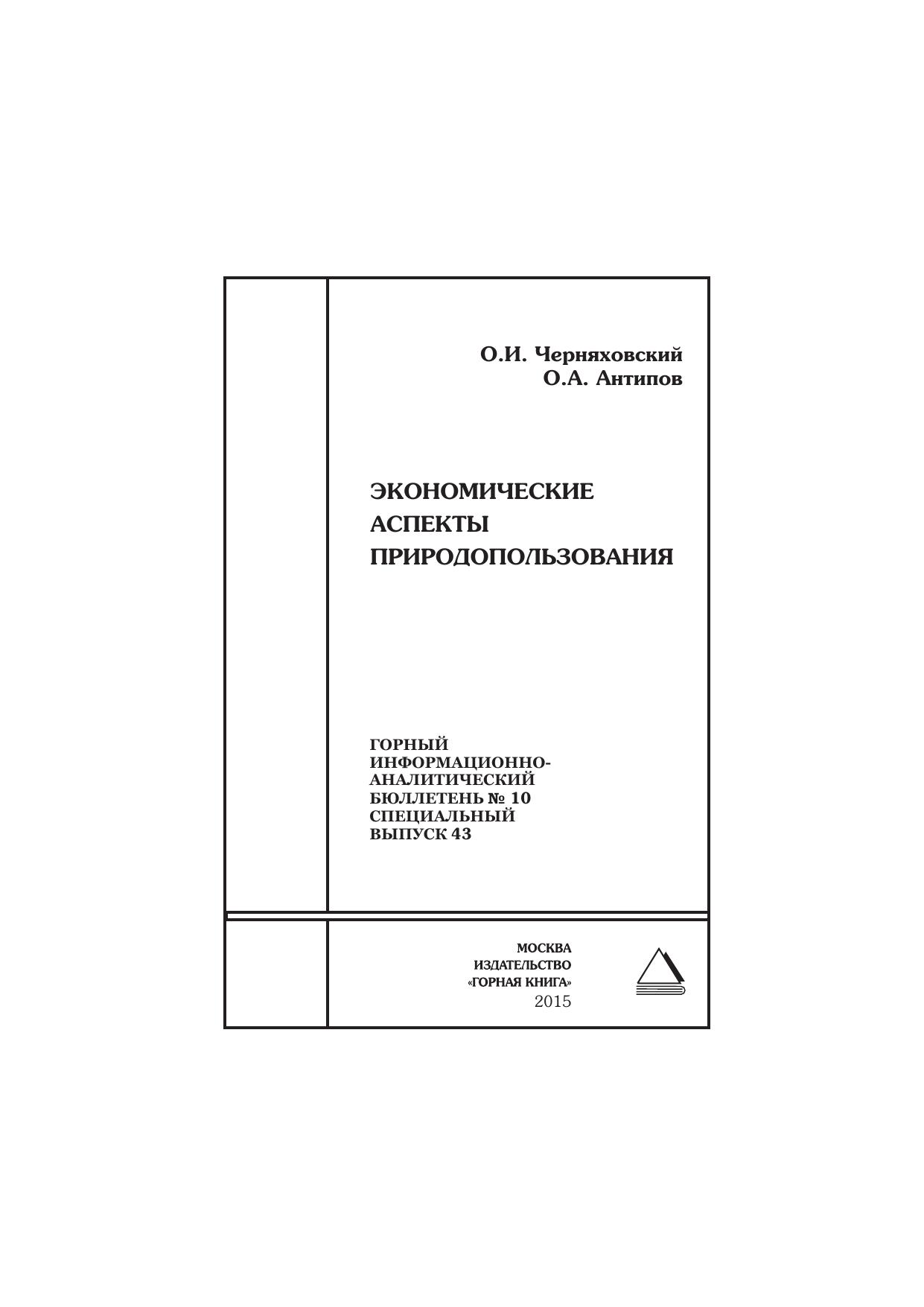Экономические аспекты природопользования. Отдельные статьи: Горный информационно-аналитический бюллетень (научно-технический журнал)