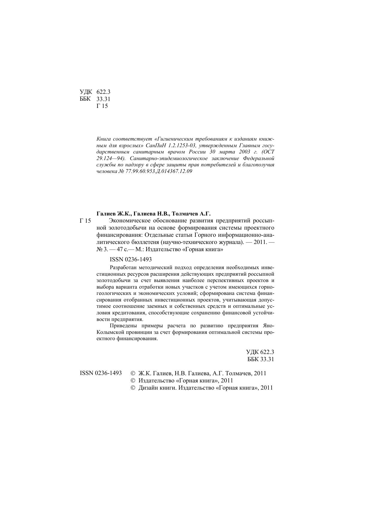 Разработан методический подход определения необходимых инвестиционных ресурсов расширения действующих предприятий россыпной золотодобычи за счет выявления наиболее перспективных проектов и выбора варианта отработки новых участков с учетом имеющихся горногеологических и экономических условий сформирована система финансирования отобранных инвестиционных проектов, учитывающая допустимое соотношение заемных и собственных средств и оптимальные условия кредитования, способствующие сохранению финансовой устойчивости предприятия. Приведены примеры расчета по развитию предприятия Яно-Колымской провинции за счет формирования оптимальной системы проектного финансирования