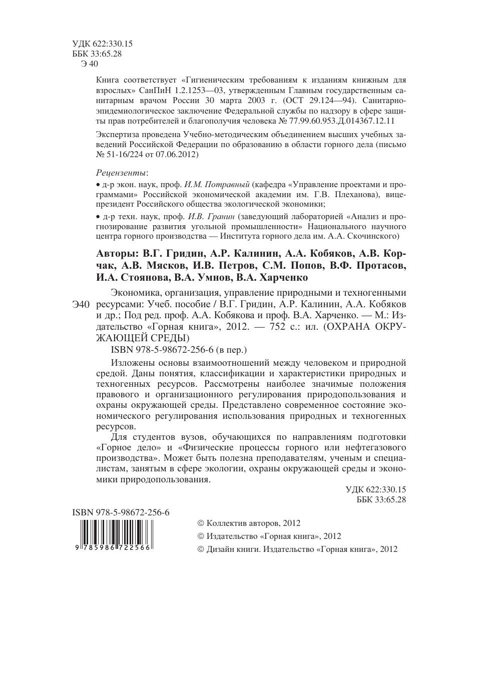 Гриф: Допущено Учебно-методическим объединением вузов Российской Федерации по образованию в области горного дела в качестве учебного пособия для студентов вузов, обучающихся по направлениям подготовки (специальностям) «Горное дело» и «Физические процессы горного или нефтегазового производства», профилю подготовки «Экономит природопользования» направления подготовки «Экономика» и профилю подготовки «Охрана окружающей среды и ресурсосбережение» направления подготовки «Техносферная безопасность»