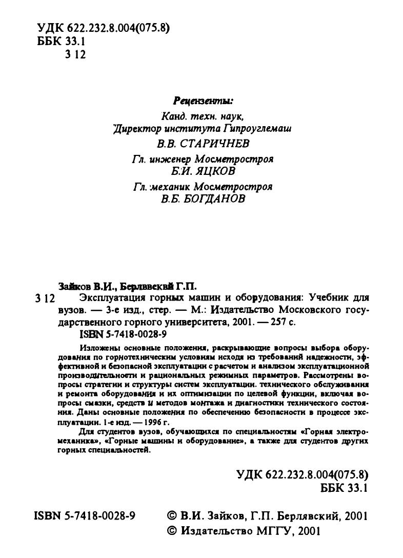 Гриф: Рекомендовано Министерством образования Российской Федерации в качестве учебника для студентов высших учебных заведений, обучающихся по направлению «Горное дело» и специальности «Горные машины и оборудование».