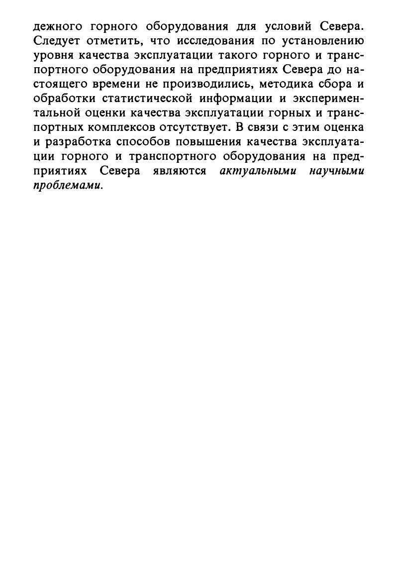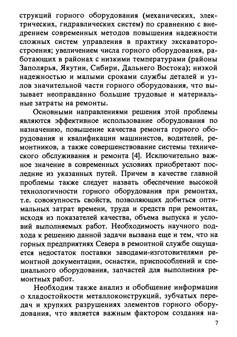 В монографии изложена система управления качеством эксплуатации карьерного горно-транспортного оборудования в условиях Севера. Предложен метод расчета полезной работы горно-транспортного оборудования как для отдельной машины, работающей в комплексе ( буровой станок, экскаватор, автосамосвал), так и комплекса в целом. На основе безэкспертной методики исследована и оценена ремонтная и эксплуатационная технологичность горно-транспортного оборудования, разработаны оптимальные структуры и сроки проведения ремонтов. Определены необходимые материальные и трудовые затраты, обеспечивающие поддержание требуемого уровня качества эксплуатации горно-транспортного оборудования. Исследованы и установлены факторы, влияющие на качество горного и транспортного оборудования, работающего в условиях Севера. Даны рекомендации по организации ремонта горно-транспортного оборудования, по совершенствованию технологии ремонта металлоконструкций оборудования в условиях низких температур, по применению материалов для металлоконструкций и зубчатых передач горно-транспортного оборудования, по подготовке обслуживающего персонала. Предназначена для инженерно-технических и научных работников, занимающихся проектированием, созданием и эксплуатацией горно-транспортных машин в условиях Севера.