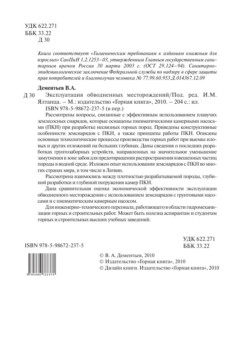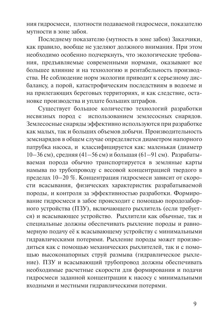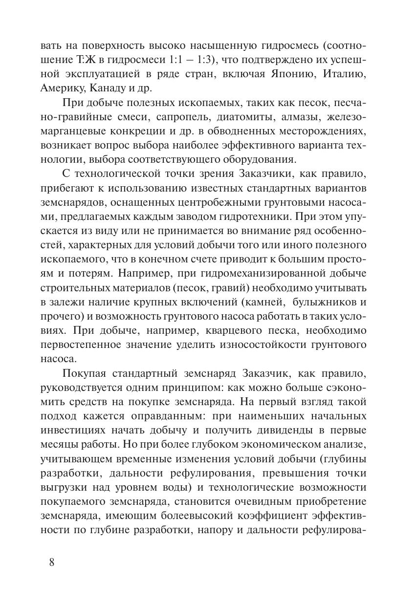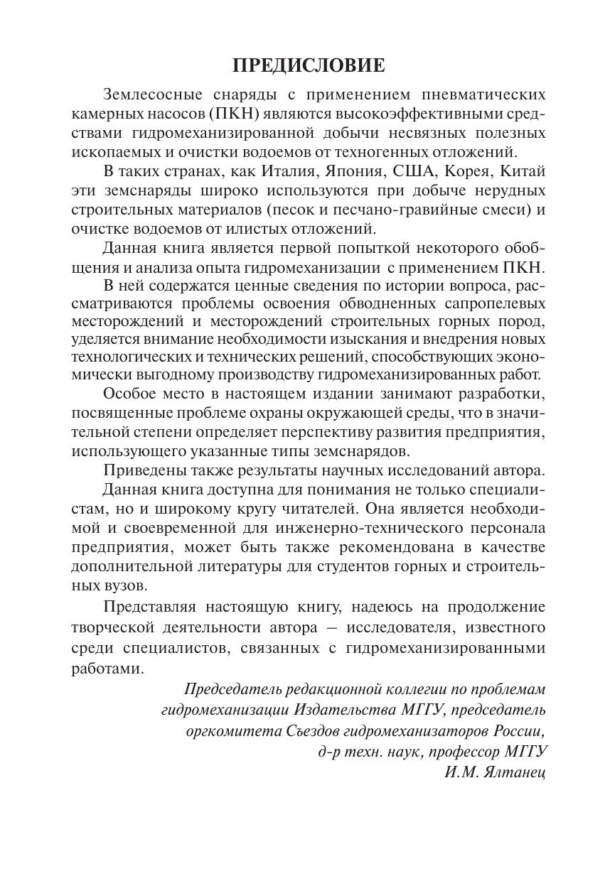 ассмотрены вопросы, связанные с эффективным использованием плавучих землесосных снарядов, которые оснащены пневматическими камерными насосами (ПКН) при разработке несвязных горных пород. Приведены конструктивные особенности земснарядов с ПКН, а также принципы работы ПКН. Описаны основные технологические процессы производства горных работ при выемке иловых и других отложений на больших глубинах. Даны сведения о последних разработках грунтозаборных устройств, направленных на значительное уменьшение замугнения в зоне забоя для предотвращения распространения взвешенных частиц породы в водной среде. Изложен опыт использования земснарядов с ПКН во многих странах мира, в том числе в Латвии. Рассмотрена взаимосвязь между плотностью разрабатываемой породы, глубиной разработки и глубиной погружения камер ПКН. Дана сравнительная оценка экономической эффективности эксплуатации обводненного месторождения с использованием земснарядов с фунтовыми насосами и с пневматическим камерным насосом. Для инженерно-технического персонала, работающего в области гидромеханизации горных и строительных работ. Может быть полезна аспирантам и студентам горных и строительных высших учебных заведений.