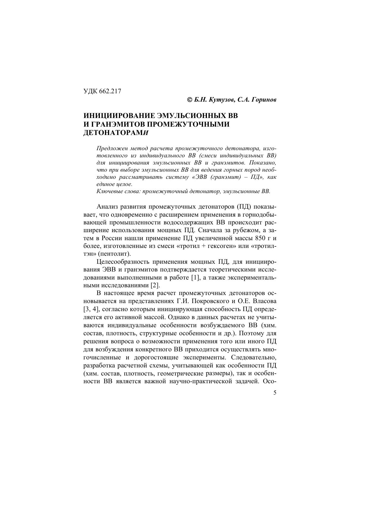 Эмульсионные ВВ, гранэмиты и ANFO: структура, инициирование, физико-технические основы создания
