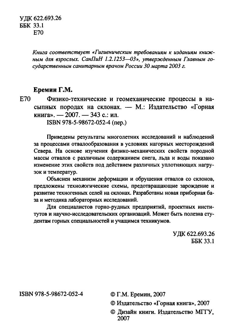 Физико-технические и геомеханические процессы насыпных пород на склонах