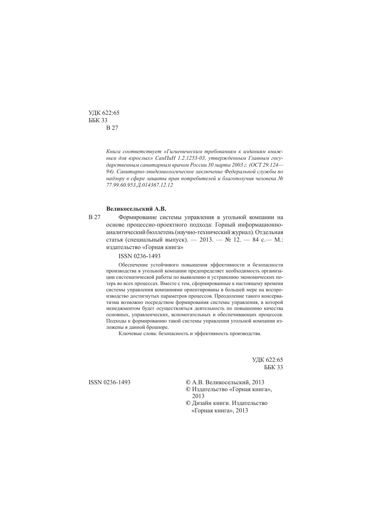 Обеспечение устойчивого повышения эффективности и безопасности производства в угольной компании предопределяет необходимость организации систематической работы по выявлению и устранению экономических потерь во всех процессах. Вместе с тем, сформированные к настоящему времени системы управления компаниями ориентированы в большей мере на воспроизводство достигнутых параметров процессов. Преодоление такого консерватизма возможно посредством формирования системы управления, в которой менеджментом будет осуществляться деятельность по повышению качества основных, управленческих, вспомогательных и обеспечивающих процессов. Подходы к формированию такой системы управления угольной компании изложены в данной брошюре. Ключевые слова: безопасность и эффективность производства.