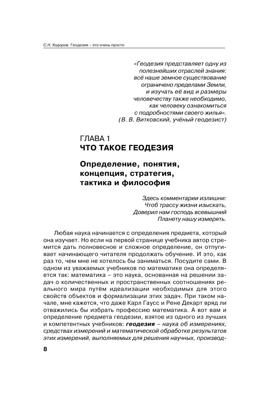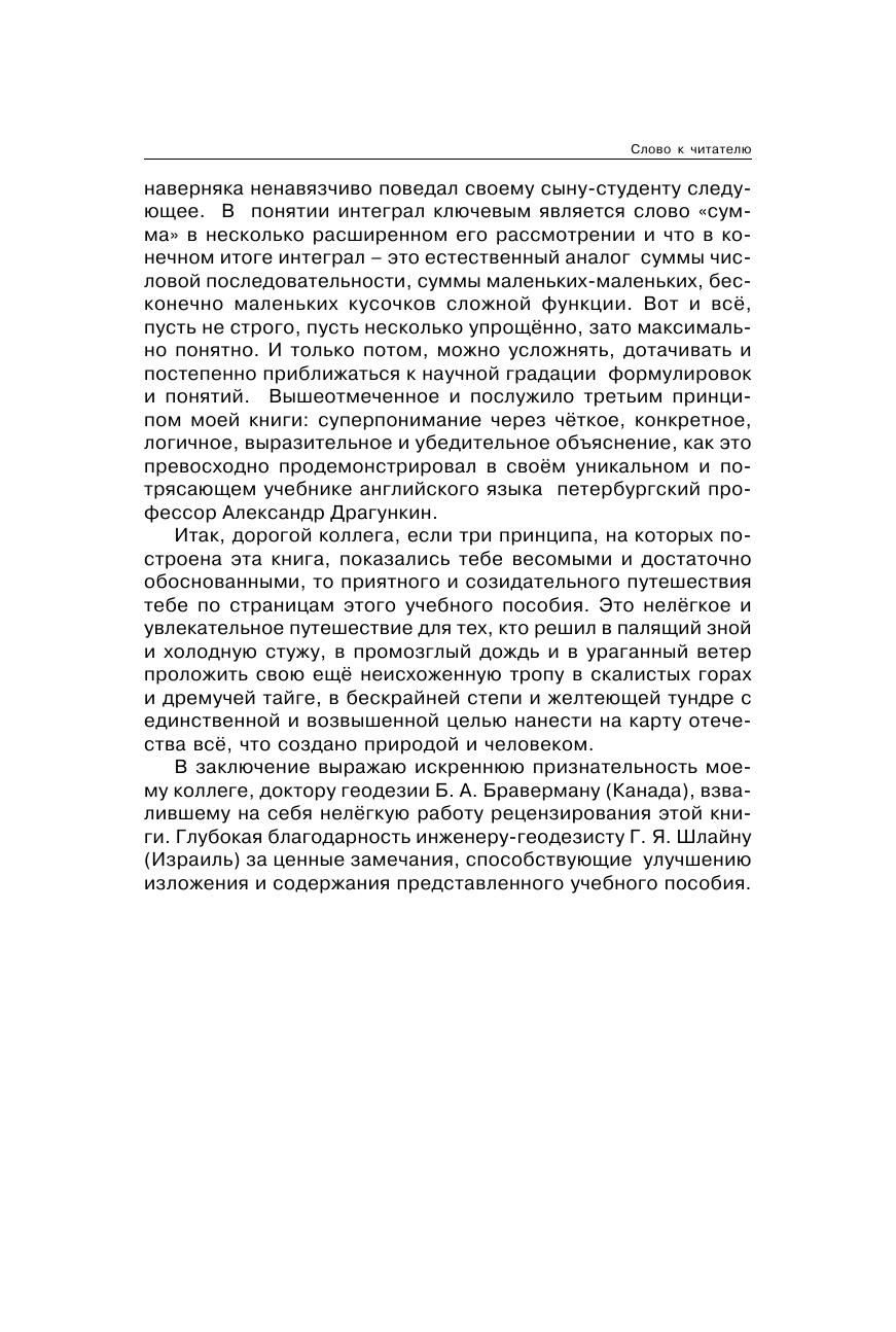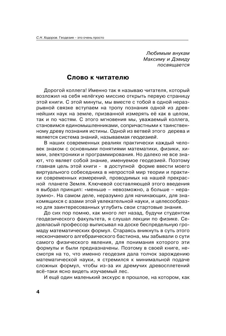 Книга, прежде всего, предназначена для молодых людей, которые стоят на перепутье выбора профессии. Именно для них в простой, доступной и популярной форме повествуется об основах системы знаний, называемых геодезией. В то же время эта книга не для "чайников", которым важно быстро и эпизодически выхватить фрагмент какой-то информации. Она ориентирована на серьёзного читателя, заинтересованного открыть для себя новую инженерную дисциплину.