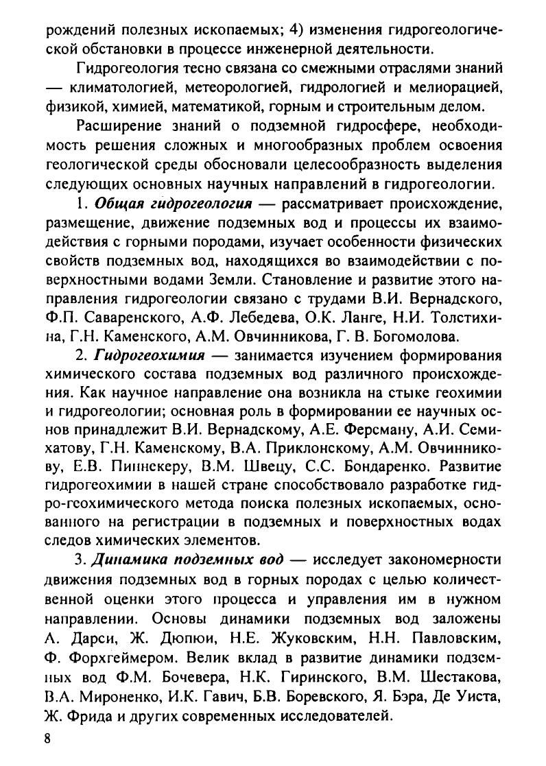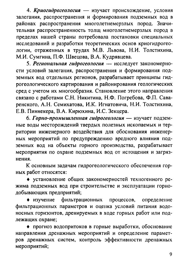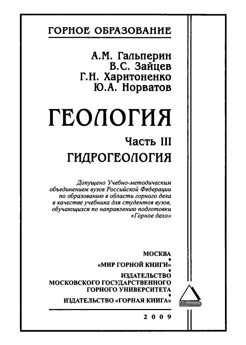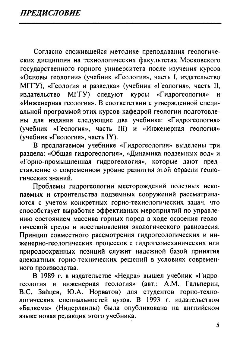 Изложены основные вопросы дисциплины геологического курса — гидрогеологии — применительно к практике горного дела. Приведены сведения по общей гидрогеологии, динамике подземных вод, горно-промышленной гидрогеологии. Подробно охарактеризованы гидрогеологические задачи, решаемые при освоении обводненных месторождений твердых полезных ископаемых и подземном строительстве. Дана методика составления прогнозных оценок гидрогеологических условии освоения геологической среды. Описаны мероприятия по управлению техногенным режимом подземных вод, а также методика изучения гидрогеологической обстановки территорий освоения геологической среды. Для студентов вузов, обучающихся по направлению подготовки «Горное дело».