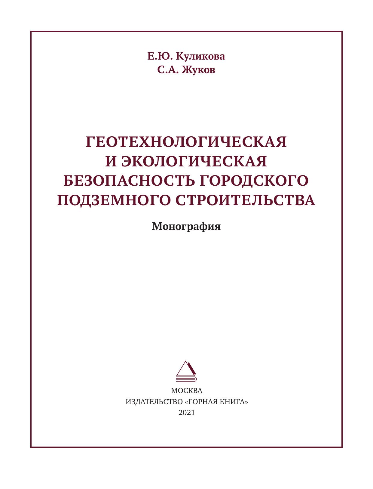 Геотехнологическая и экологическая безопасность городского подземного строительства