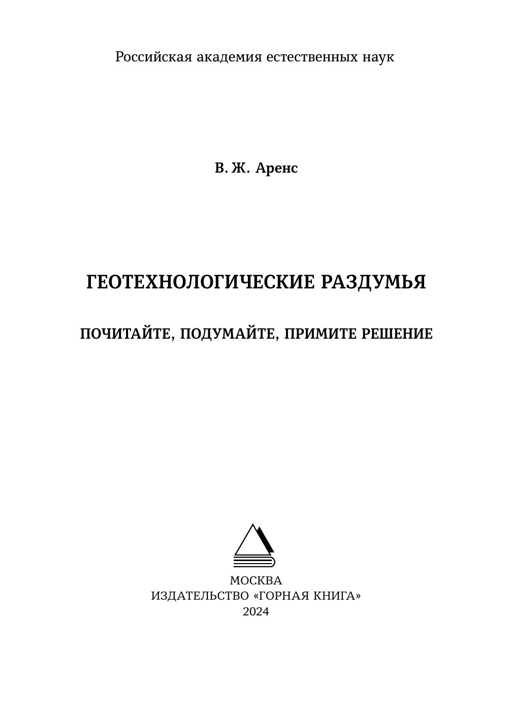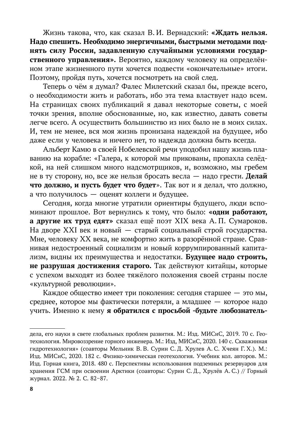 В книге собраны размышления автора о жизни, горном деле, его науке, горном праве и подготовке горных инженеров. Для специалистов горного профиля, научных работников, преподавателей и студентов учебных заведений.