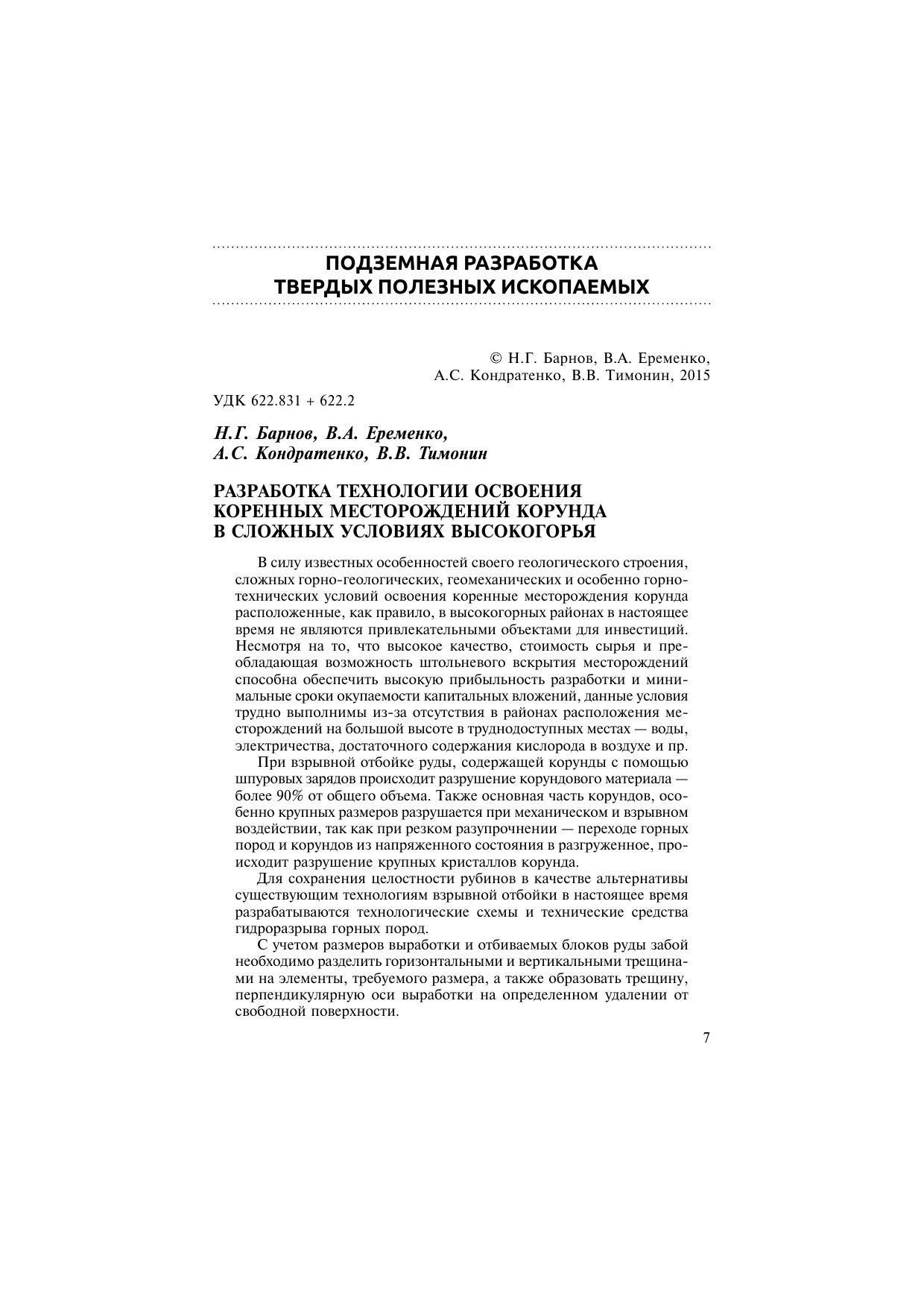Горное дело в ХХI веке: технологии, наука, образование-1. Материалы Международной научно-практической конференции. В 2 т. Т. 1. Горный информационно-аналитический бюллетень (научно-технический журнал) Mining Informational and Analytical Bulletin (Scientific and Technical Journal)