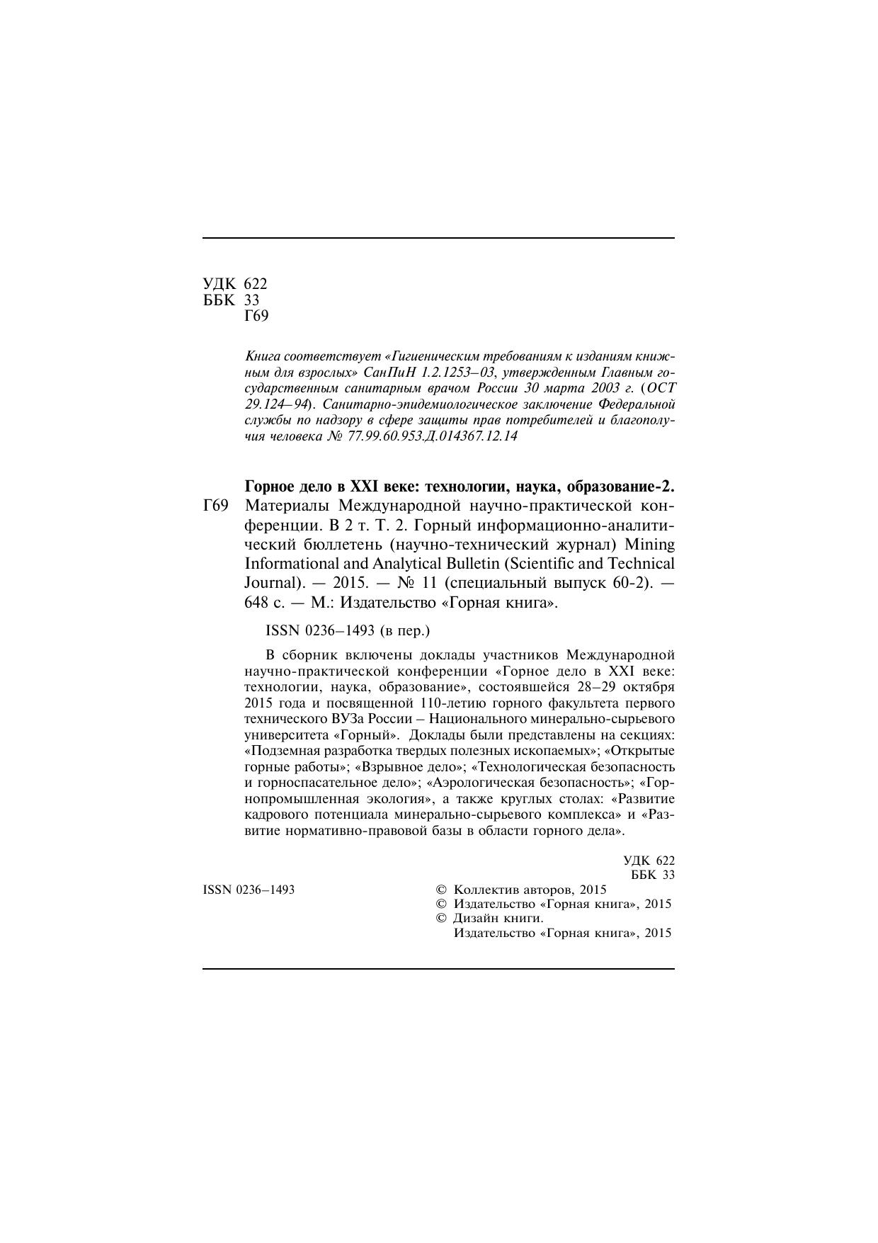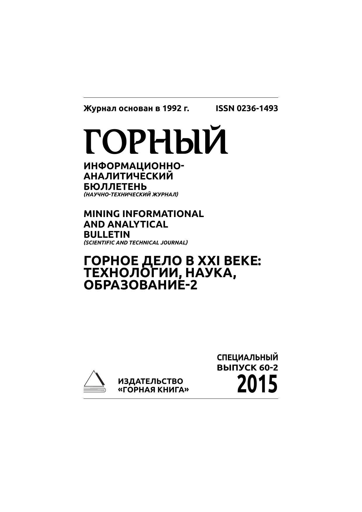 Горное дело в ХХI веке: технологии, наука, образование-2. Материалы Международной научно-практической конференции. В 2 т. Т. 2. Горный информационно-аналитический бюллетень (научно-технический журнал) Mining Informational and Analytical Bulletin (Scientific and Technical Journal)