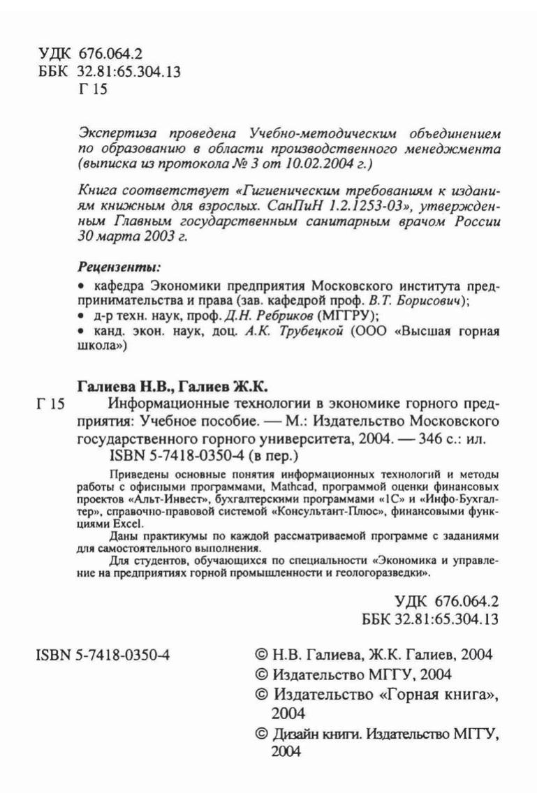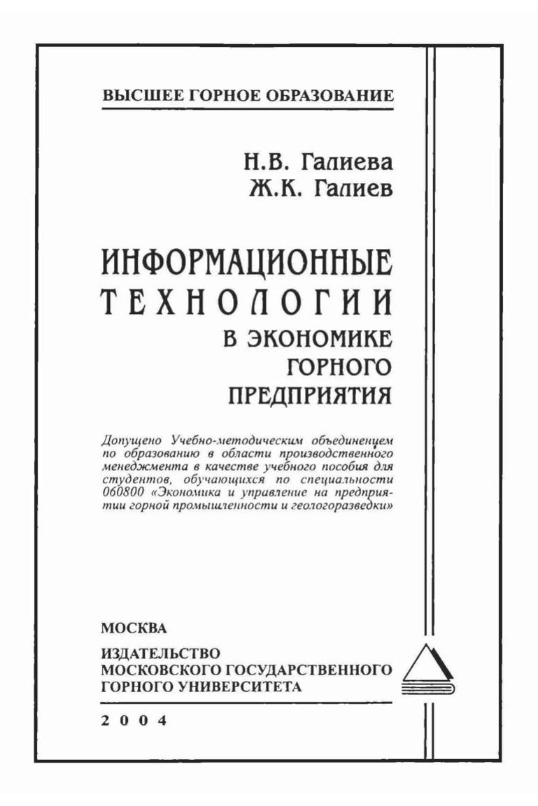 Гриф: Допущено Учебно-методическим объединением по образованию в области производственного менеджмента в качестве учебного пособия для студентов, обучающихся по специальности 060800 «Экономика и управление на предприятии горной промышленности и геологоразведки».