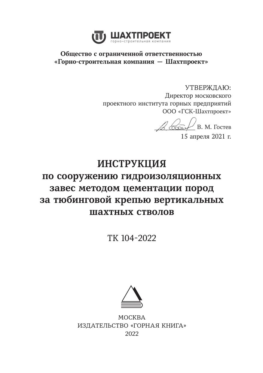 Инструкция по сооружению гидроизоляционных завес методом цементации пород за тюбинговой крепью вертикальных шахтных стволов