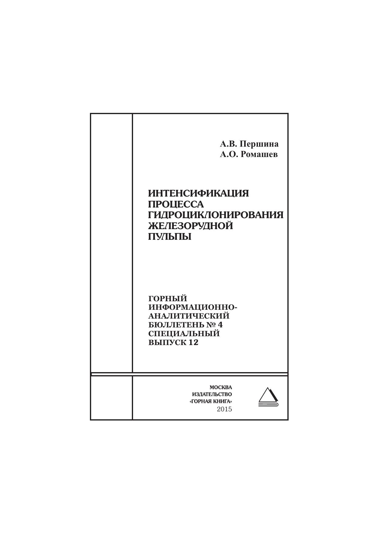 Интенсификация процесса гидроциклонирования железорудной пульпы. Отдельные статьи: Горный информационно-аналитический бюллетень (научно-технический журнал)