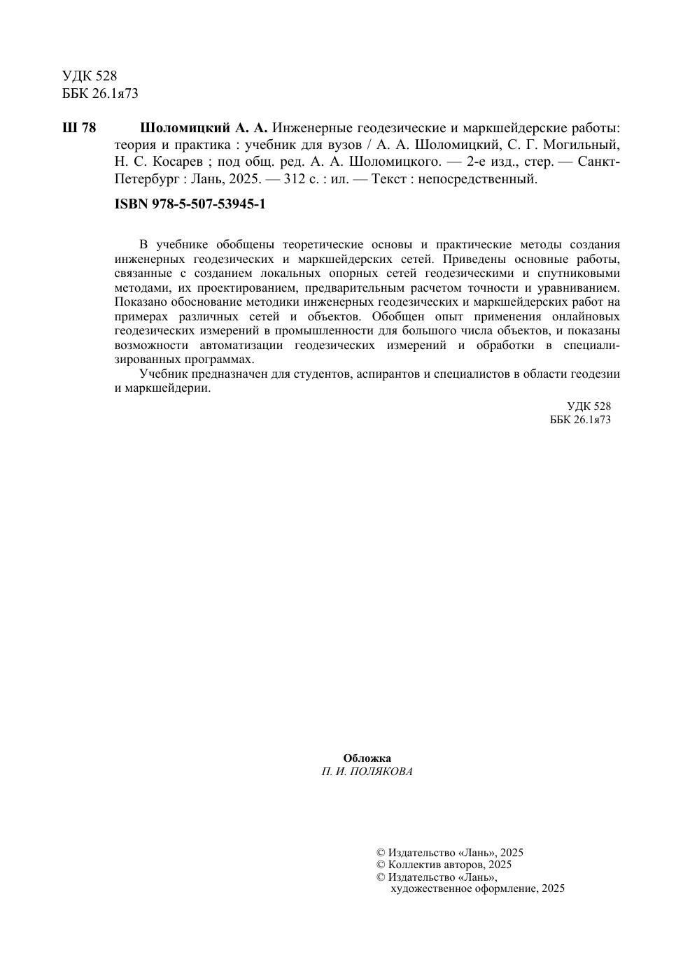 В учебнике обобщены теоретические основы и практические методы создания инженерных геодезических и маркшейдерских сетей. Приведены основные работы, связанные с созданием локальных опорных сетей геодезическими и спутниковыми методами, их проектированием, предварительным расчетом точности и уравниванием. Показано обоснование методики инженерных геодезических и маркшейдерских работ на примерах различных сетей и объектов. Обобщен опыт применения онлайновых геодезических измерений в промышленности для большого числа объектов и показаны возможности автоматизации геодезических измерений и обработки в специализированных программах. Учебник предназначен для студентов, аспирантов и специалистов в области геодезии и маркшейдерии.
