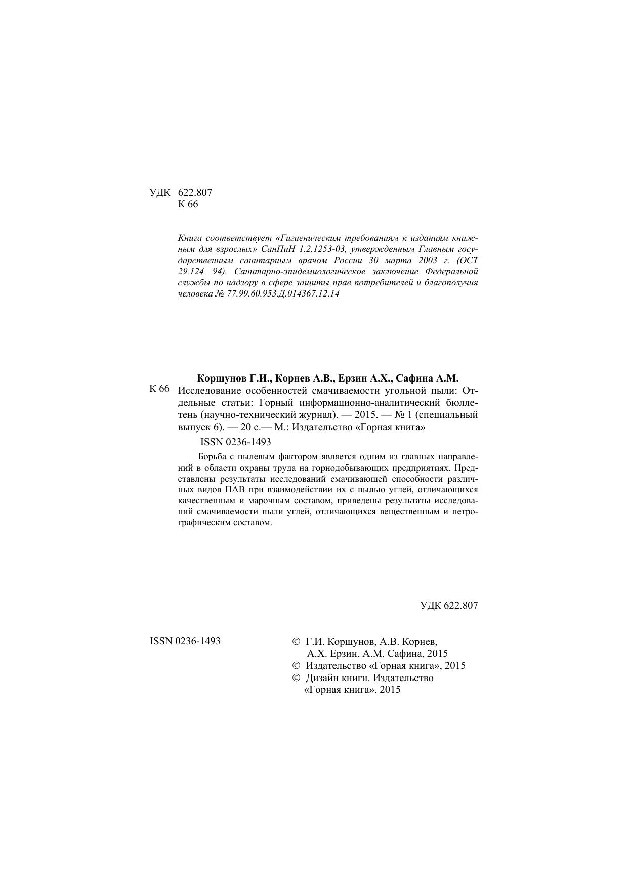 Исследование особенностей смачиваемости угольной пыли: Отдельные статьи: Горный информационно-аналитический бюллетень (научно-технический журнал)