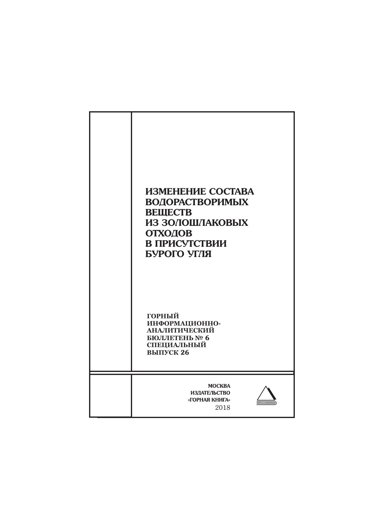 Изменение состава водорастворимых веществ из золошлаковых отходов в присутствии бурого угля. Горный информационно-аналитический бюллетень (научно-технический журнал). № 6