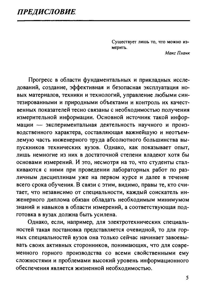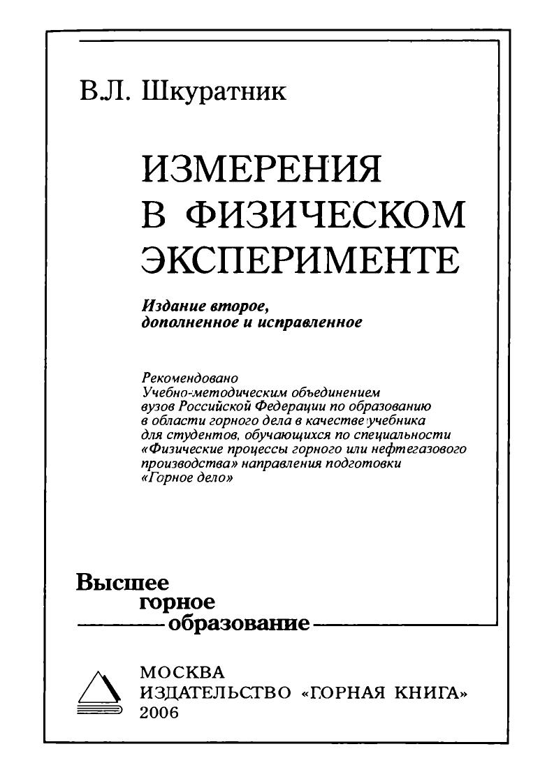 Приведена обобщенная характеристика физического эксперимента как метода научного познания. Рассмотрены основные фундаментальные понятия в области измерений и измерительной техники. Подробно изложены положения теории вероят-ностей и математической статистики, используемые в задачах обработки результатов измерений и планирования эксперимента. Рассмотрены методические вопросы подготовки и проведения измерений. Даны практические рекомендации по обработке и представлению их результатов. Изложены основы оптимального планирования измерительных экспериментов. Для студентов вузов, обучающихся по специальности «Физические процессы горного или нефтегазового производства» направления подготовки «Горное дело». Учебник призван подготовить их к практической деятельности в области измерений, а также осмысленному использованию рекомендаций рецептурного характера, содержащихся в соответствующей справочной литературе. Может быть использован как метрологическое пособие для специалистов, аспирантов и магистров при проведении измерительных экспериментов и использовании их результатов.